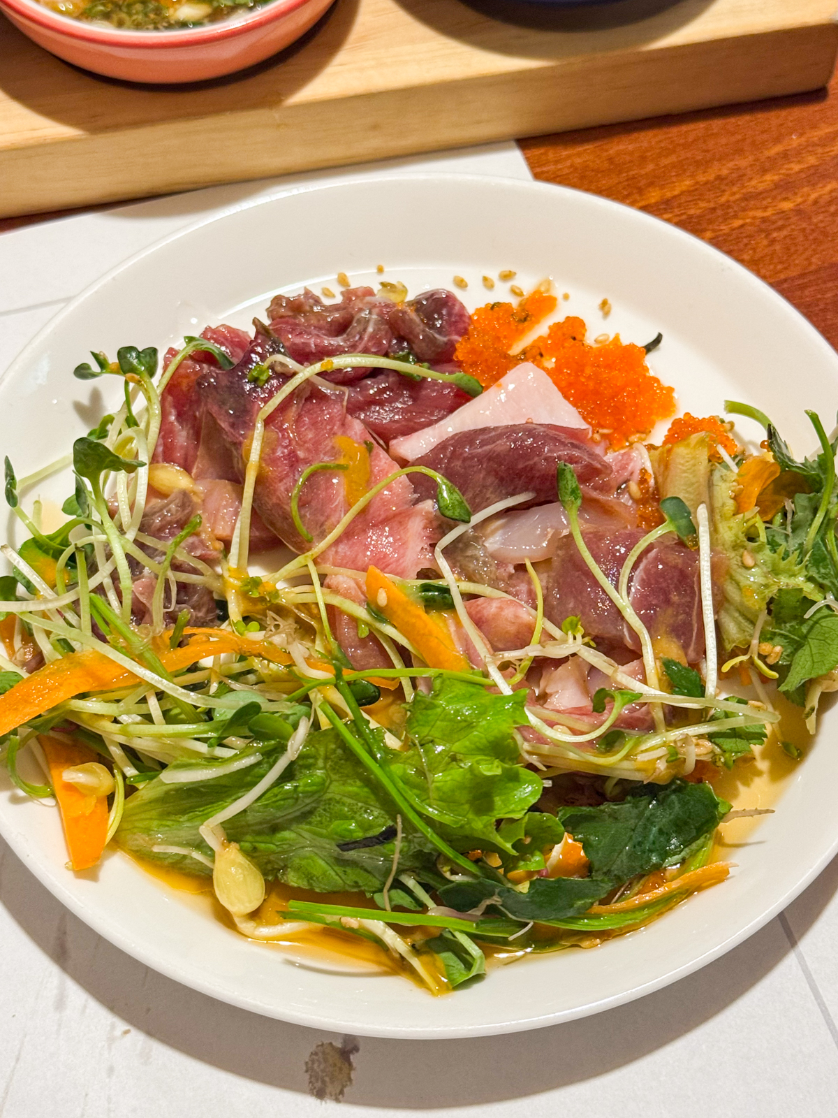 이와 함께 샐러드, 복껍질무침, 돼지고기 목살 육전 등 다양한 한상차림 요리가 나오는데 가격 대비 메뉴 구성이 푸짐해 가성비 측면에서도 뛰어난 제주 횟집이라 생각이 들었다.