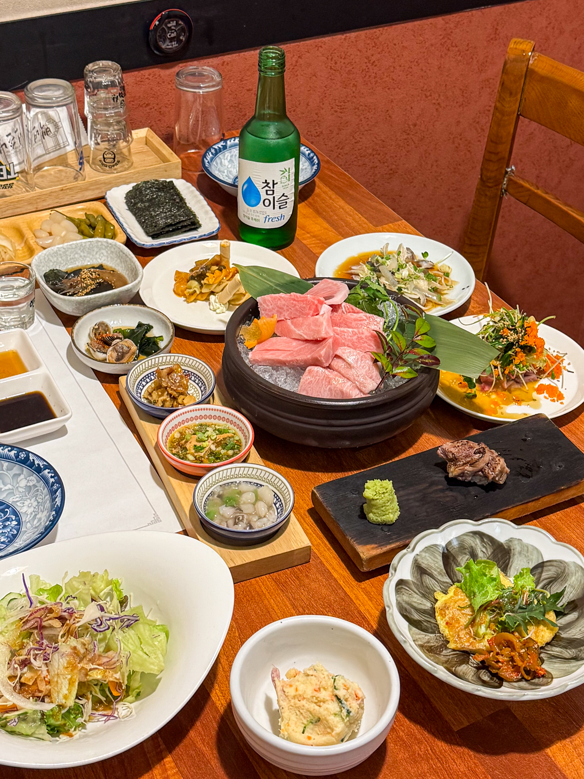 이와 함께 한 접시 10만 원인 고래고기도 있었으며 소주, 맥주, 복분자, 아사히, 여러 종류의 사케도 주문해 함께 먹을 수 있다.