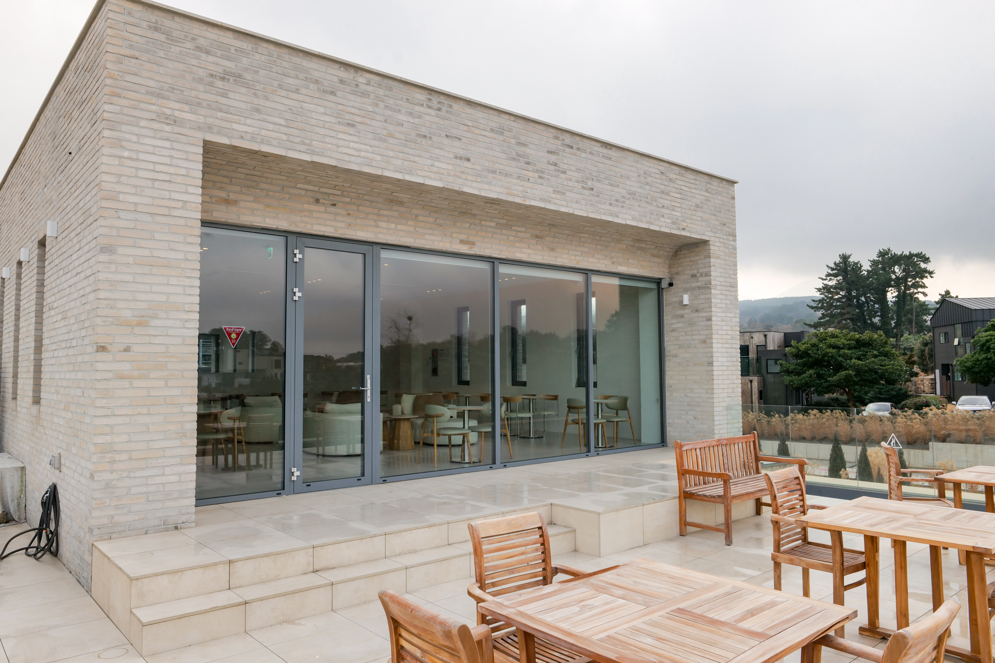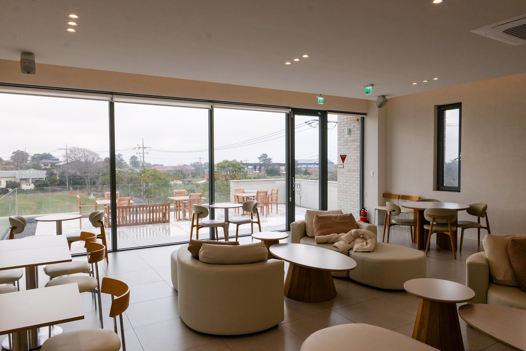 2층에 있는 문을 열고 나가면 1층 정원과 주변 경치가 한눈에 보이는 테라스도 볼 수 있다. 야외에도 테이블이 있고 애월 지역 특유의 분위기를 만끽할 수 있어 제주도 기념품 추천 장소 외에 베이커리 카페를 찾는 분들에게 추천하고 싶었다.