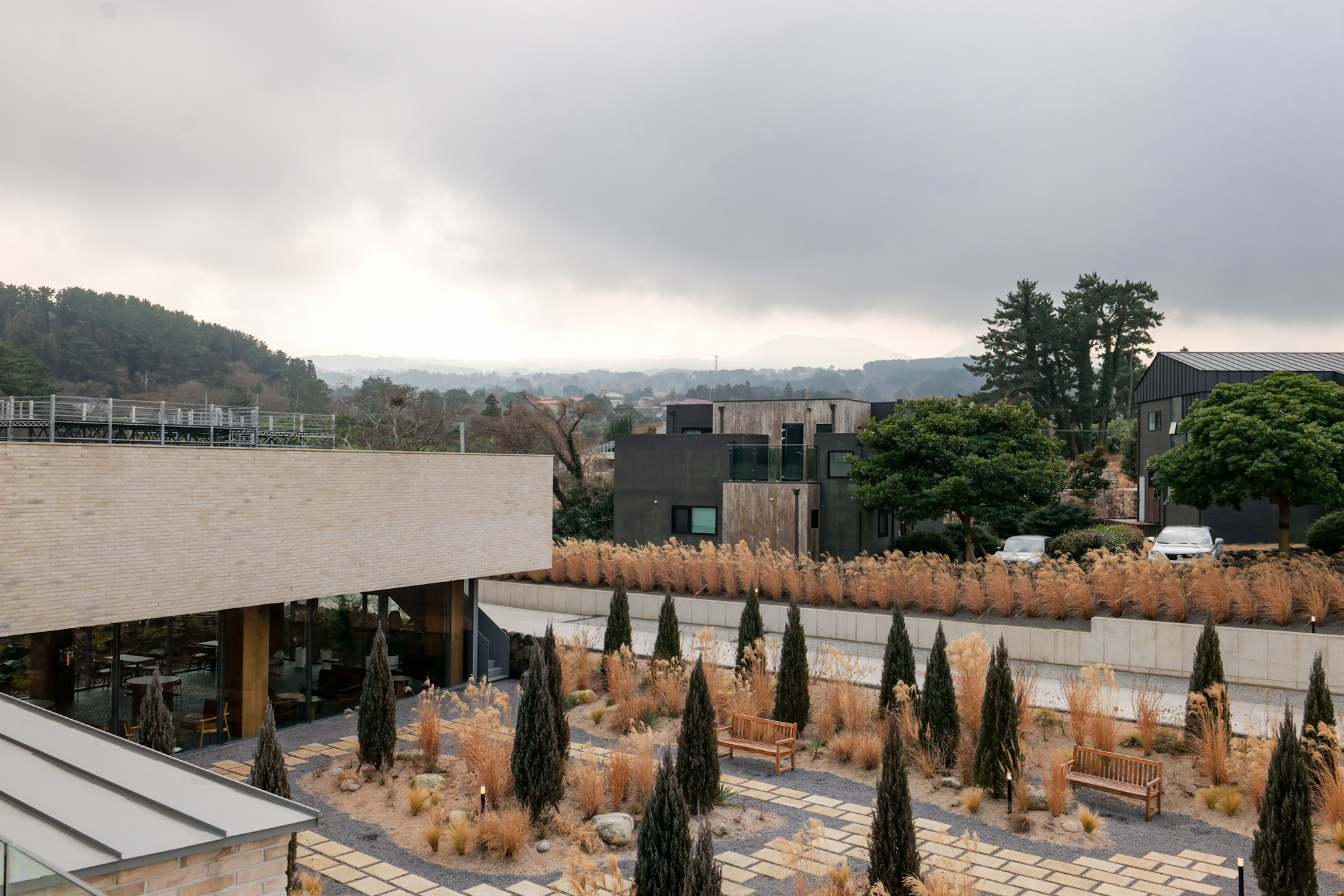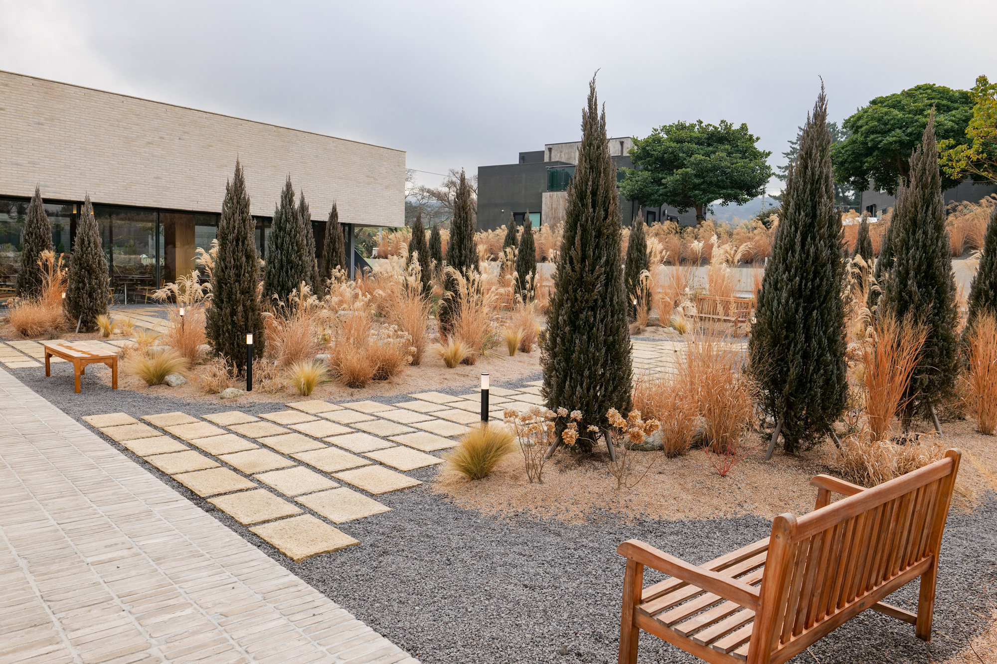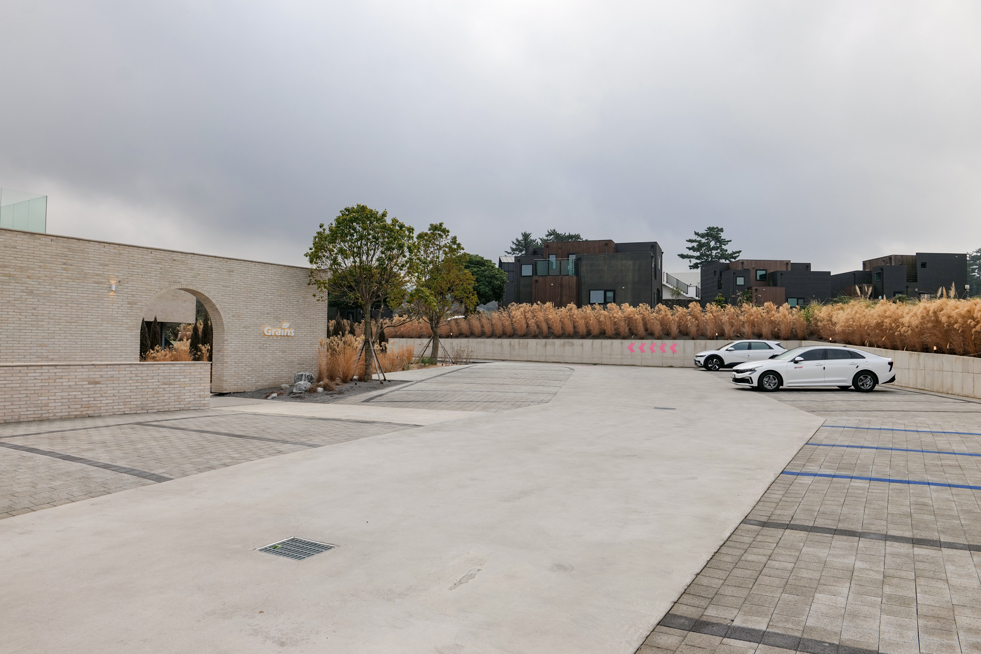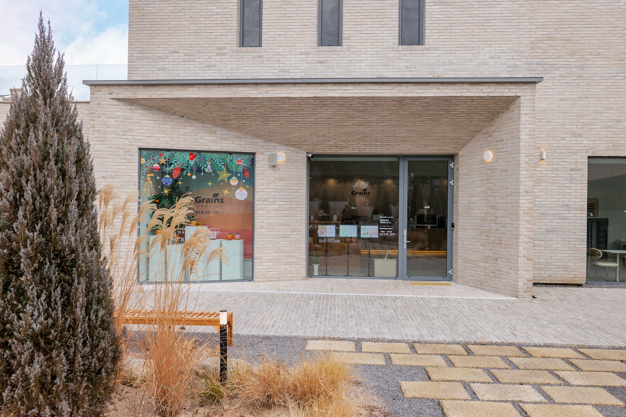 제주 애월 카페 그래인스쿠키로 들어가는 길에는 가을, 겨울철에 만나볼 수 있는 여러 억새와 함께 나무가 있는 정원이 조성되어 있으며 이곳에 함께 간 이들과 사진을 찍을 수 있게 포토존도 꾸며져 있었다.