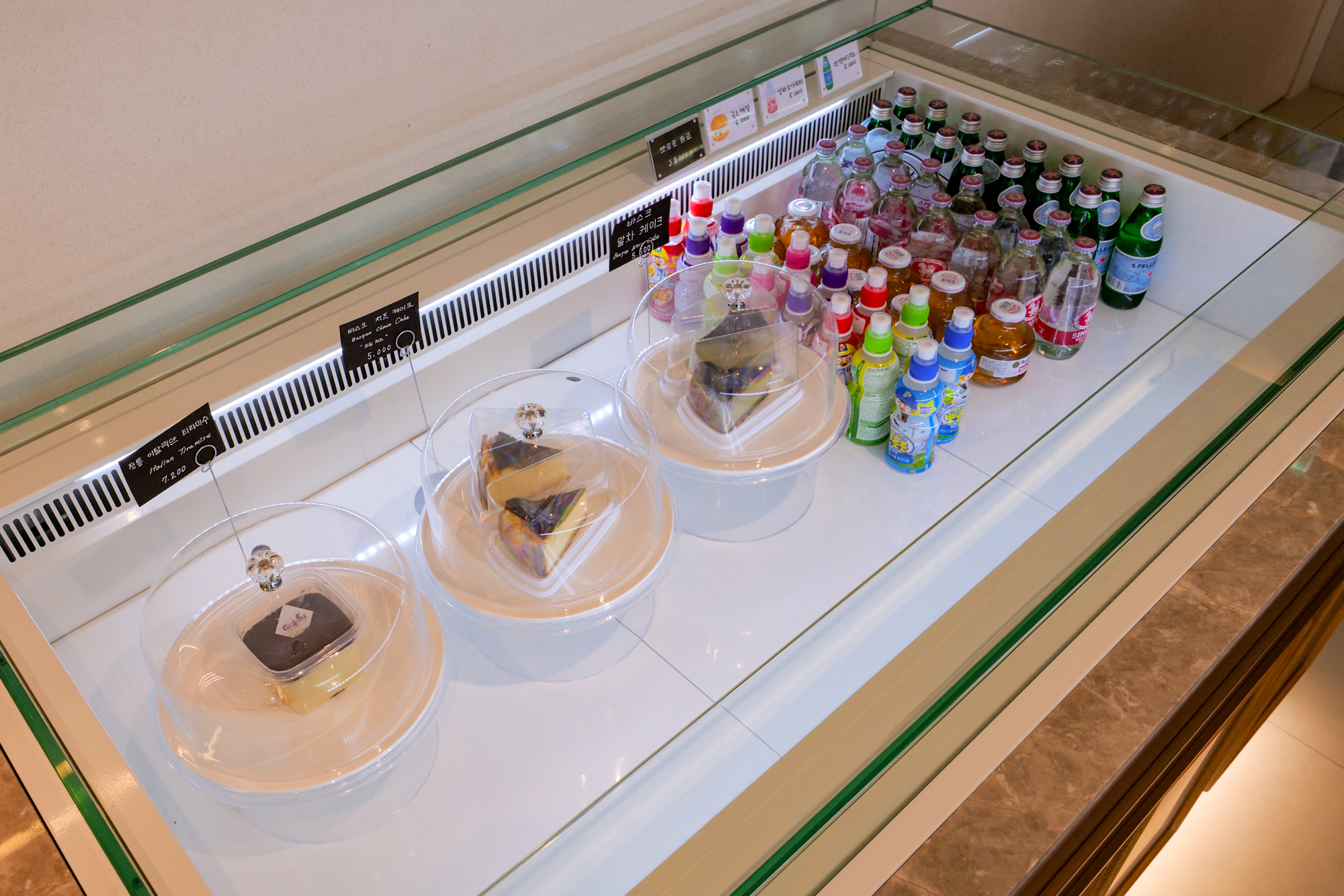 카운터 왼쪽으로는 당일 생산한 두쫀쿠, 베이커리를 골라 커피, 음료와 함께 먹을 수 있으며 겨울 한정으로 판매하는 시그니처 음료도 있었다.