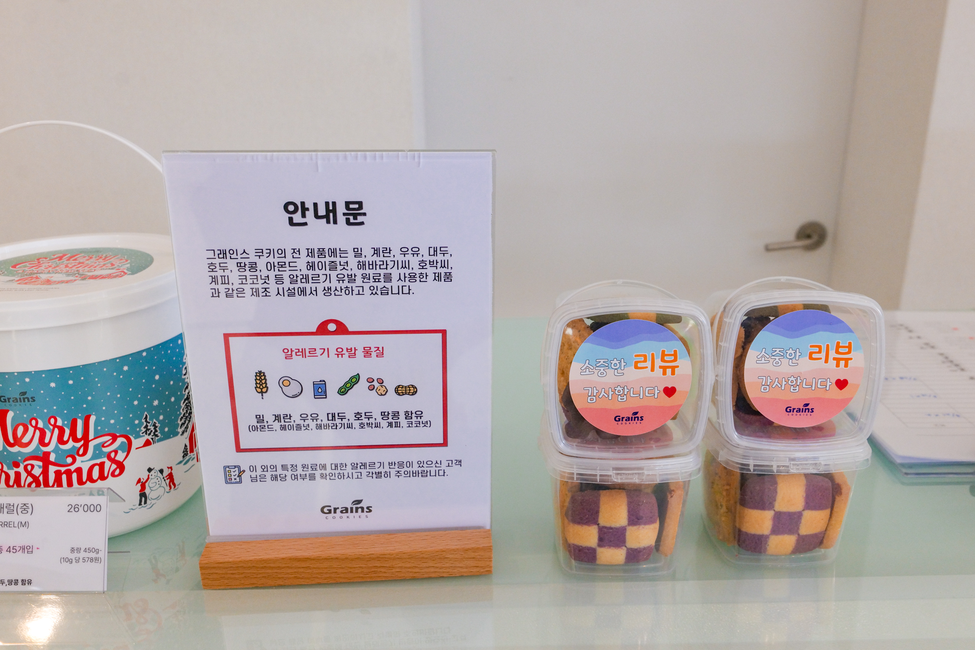 제주도 기념품 추천 그래인스쿠키는 밀, 계란, 우유, 대두, 호두, 땅콩 등이 함유되어 있는 만큼 메뉴를 고르기 전에 알레르기 반응이 있는지 미리 확인해야 한다.