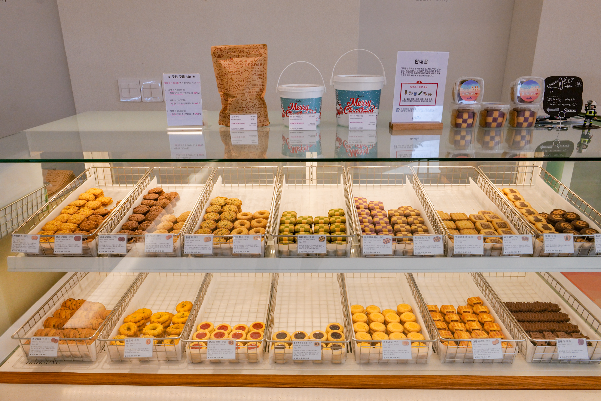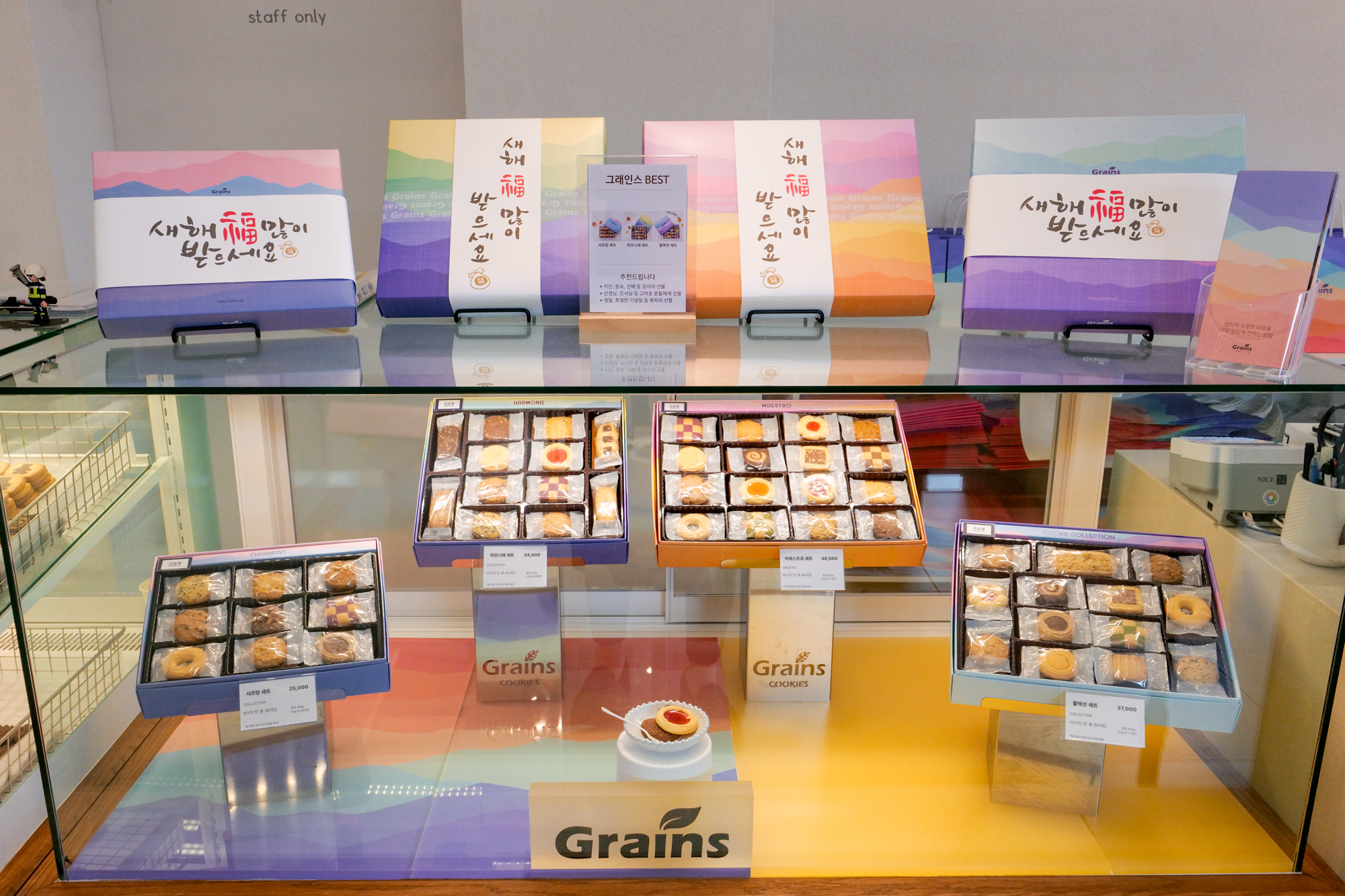 또한 제주도 기념품 추천 그래인스쿠키에서는 설날을 맞아 여러 쿠키가 들어 있는 선물세트를 한정판으로 판매하고 있었다. 따로 고르지 않고 새해 메시지가 담긴 선물박스를 바로 포장할 수 있어 기념품으로 고르기에 좋았다.
