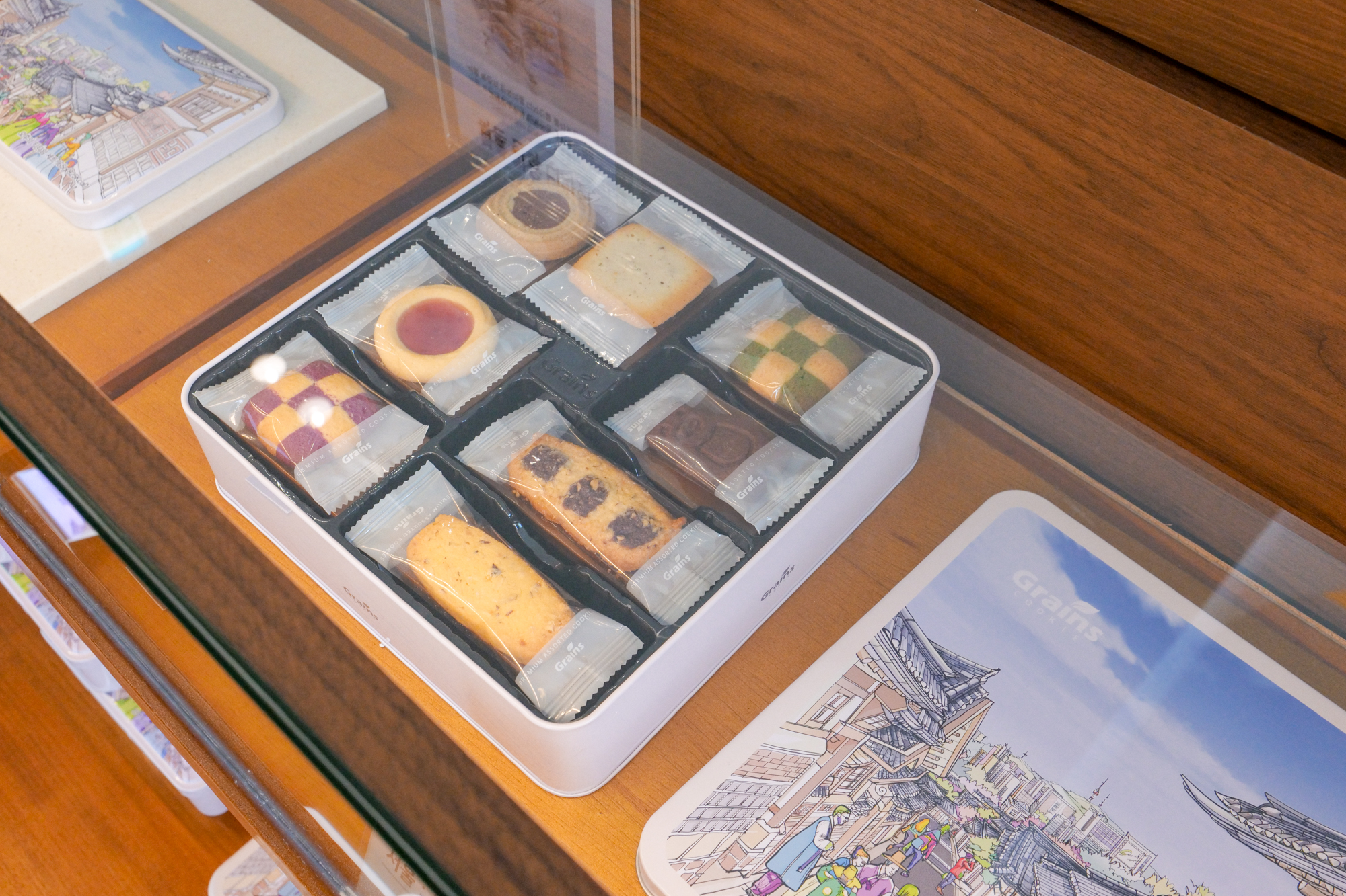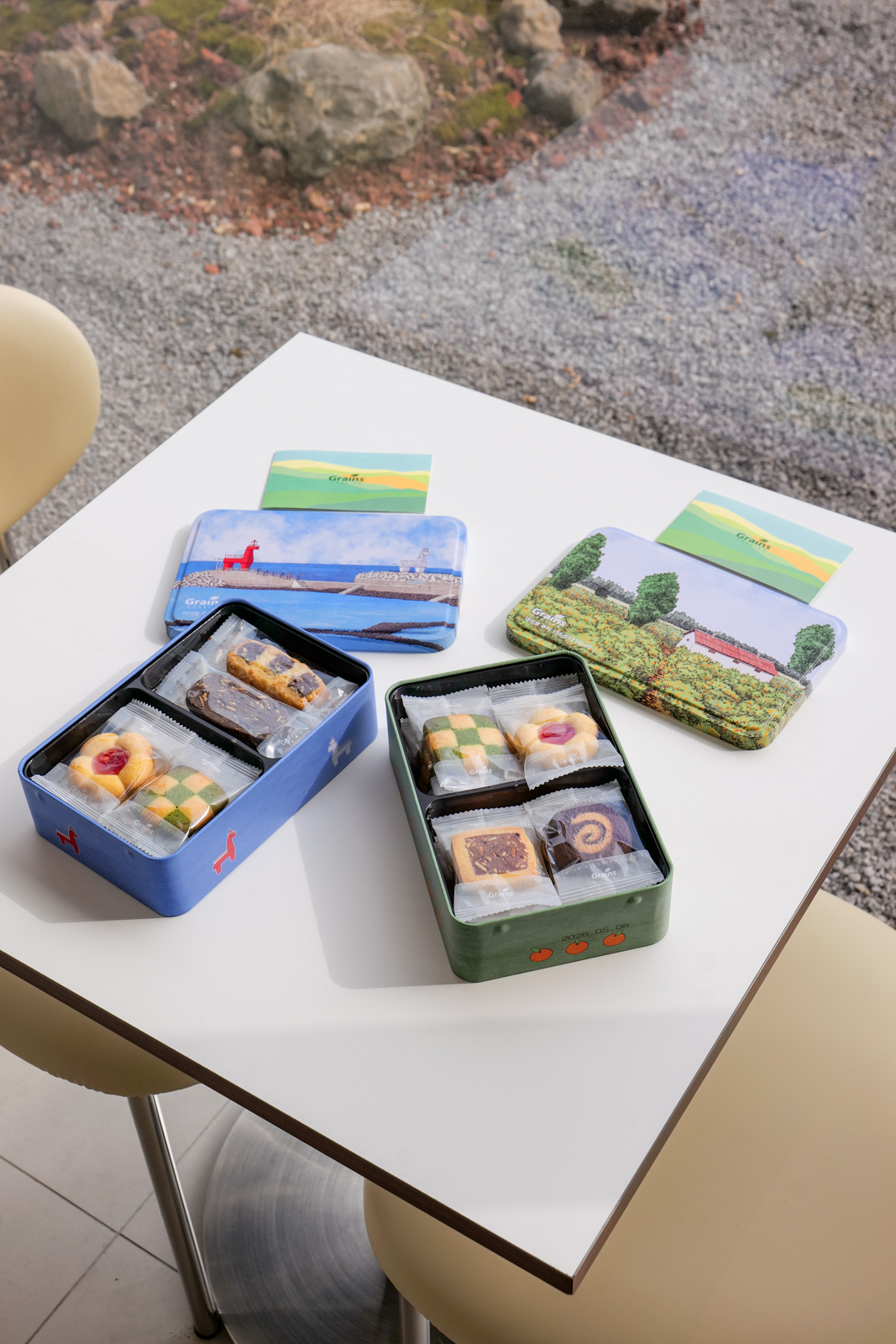 이외에도 제주도 곳곳에 위치한 명소를 그림으로 담은 그래인스쿠키 선물세트도 있어 여행 중 가족이나 친구에게 줄 기념품으로 선택하기 좋았으며 쿠키는 낱개로 꼼꼼하게 포장되어 비행기 기내 반입 시에도 파손될 걱정을 하지 않아도 된다.