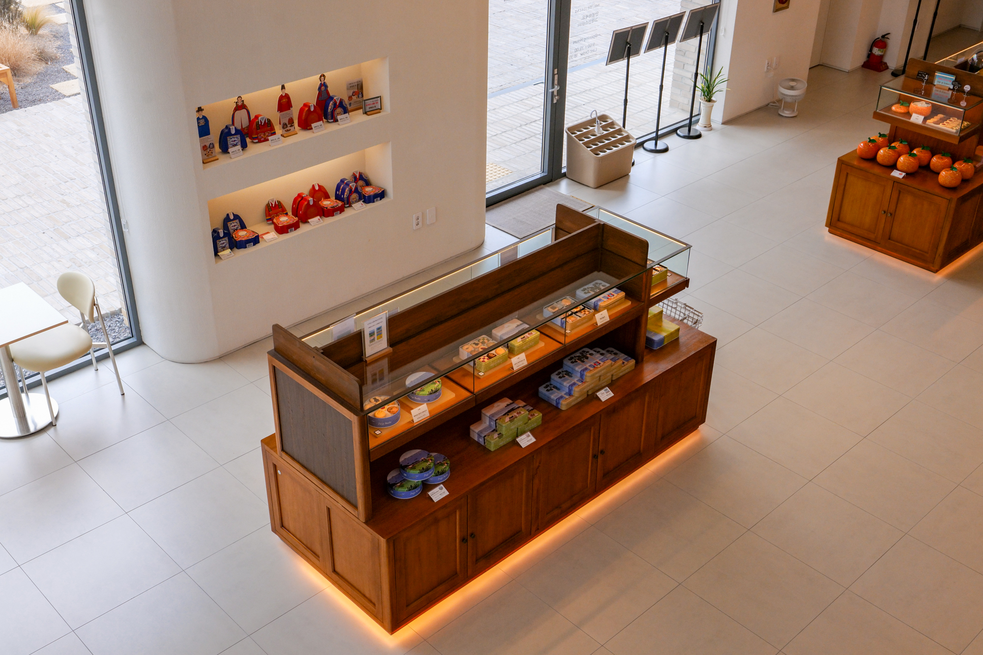 제주도의 대표적인 과일인 한라봉을 표현한 선물세트를 포함해 여러 상품이 진열장 가득 있었고 제품마다 가격도 상세하게 표시되어 있었다.