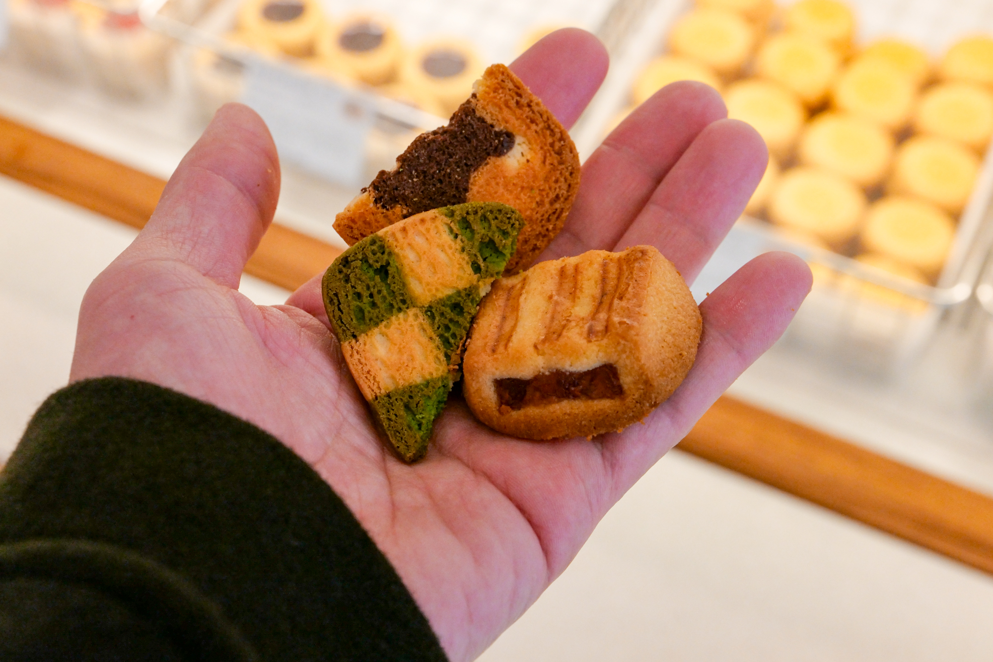그래인스쿠키를 포장하러 제주 애월 카페에 방문했던 날에는 직원 분이 먹어보라며 샘플로 쿠키를 서비스로 주셨다. 쿠키를 고르기 전에 먼저 맛을 볼 수 있었는데 하나같이 입맛에 맞아서 롯데백화점에서 인기가 많은 이유를 알 수 있었다.