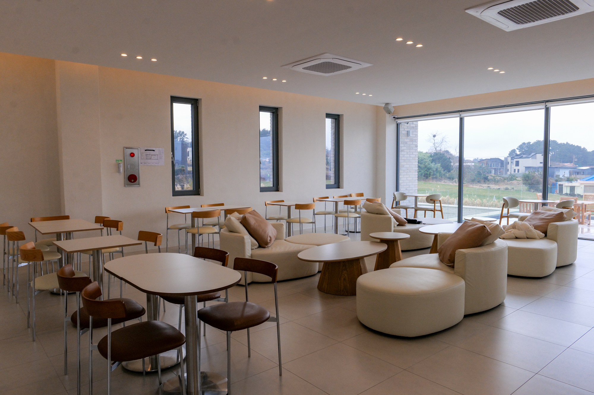 제주 애월 카페 내부 계단을 따라 2층으로 올라가면 넓은 공간에 편하게 앉을 수 있는 소파 자리도 갖춰져 있다. 단체 여행으로도 가도 될 만큼 규모가 넓은 대형카페로 이용하기에 적합해보였다.