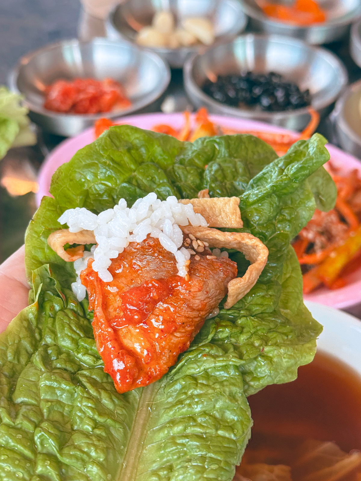 밑반찬과 메인요리인 제육볶음이 나오고 상추쌈에다가 제육을 올려 먹으니 확실히 신선한 맛으로 입맛을 사로잡았다. 제육볶음 또한 맵거나 자극적이지 않아 아이들도 충분히 먹기 좋았으며 반찬 하나하나 정갈해 내돈내산이 하나도 아깝지 않은 제주도 서쪽 현지인 맛집이었다.