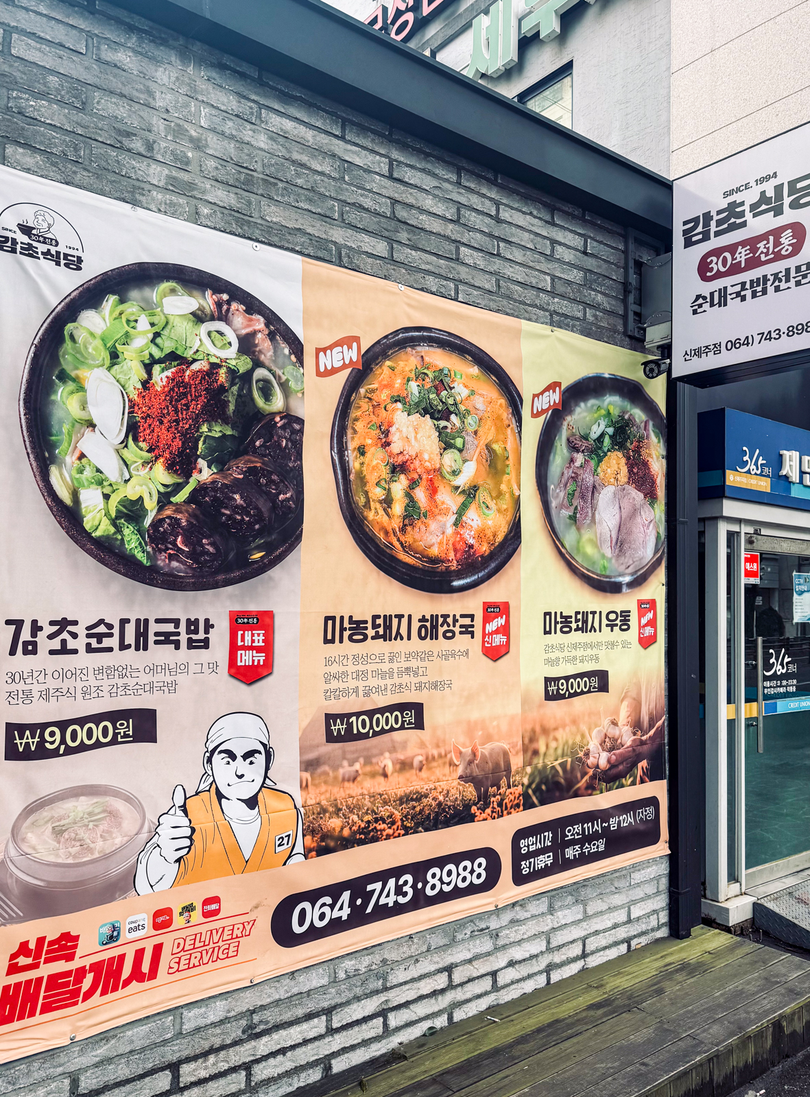 오랜만에 재방문한 감초식당 신제주점은 순대국밥과 함께 새로 출시한 마농 돼지해장국, 마농 돼지우동에 대한 내용이 담긴 포스터가 보였다.