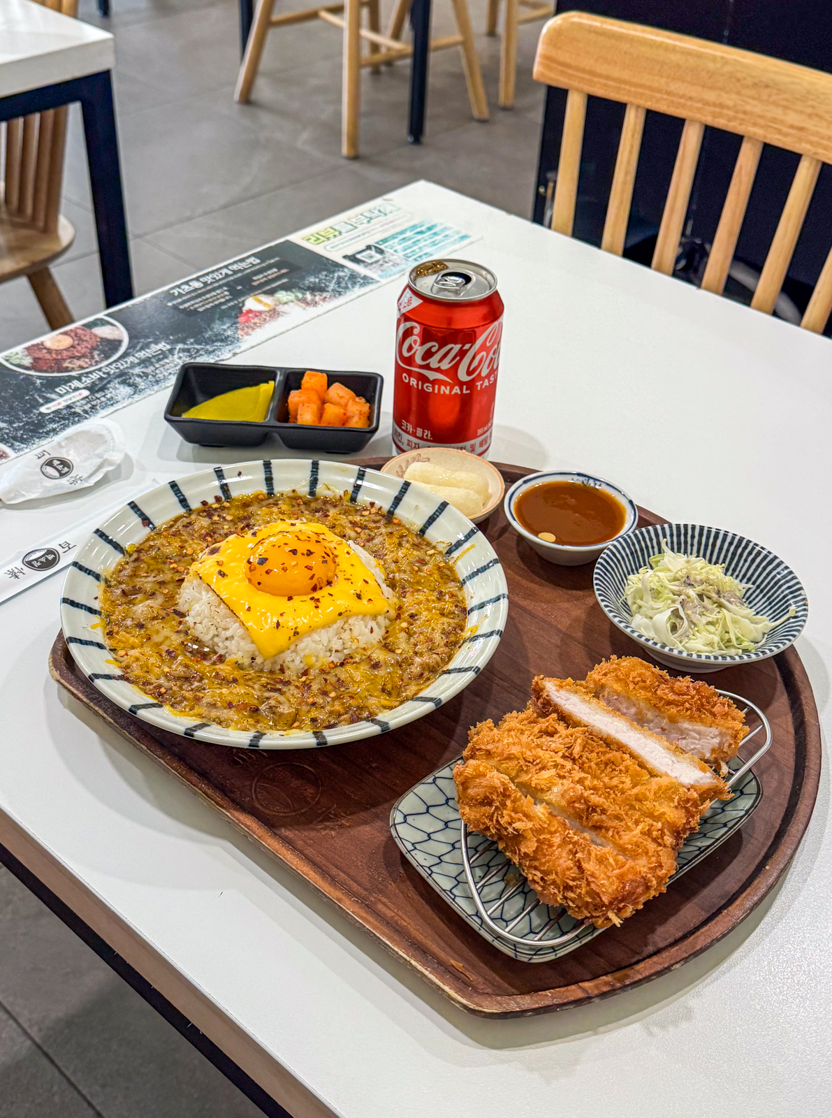 매장에 처음 방문하여 먹었던 키마카메 돈까스 세트는 특유의 향신료에 다진고기, 계란후라이, 치즈가 더해져 고소하면서 담백한 맛이 느껴졌고 두툼한 돈까스까지 있어 한끼 식사로 배부르게 먹을 수 있었다.