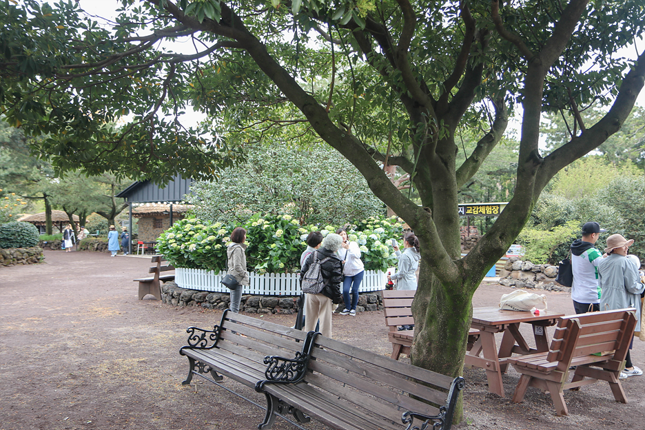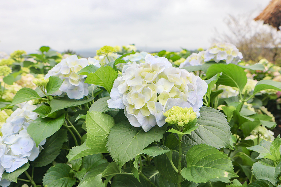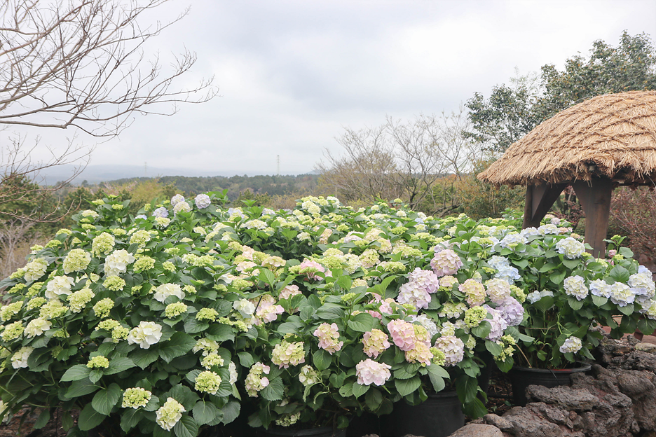 관람로를 따라 걸어가보니 제주도의 옛 초가집 지붕을 똑같이 재현한 포토존 옆에는 제주 휴애리 공원에 들어가서 봤던 것보다 훨씬 많은 수국을 만날 수 있었다.