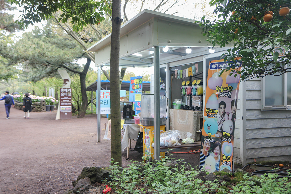 제주 휴애리 수국축제 현장 앞에는 솜사탕을 판매하는 곳이 있는데 일반적인 솜사탕이 아니라 귀여운 캐릭터가 담겨 있어 수국을 배경으로 사진을 찍을 때 촬영소품으로 활용할 수 있으니 참고해보자.