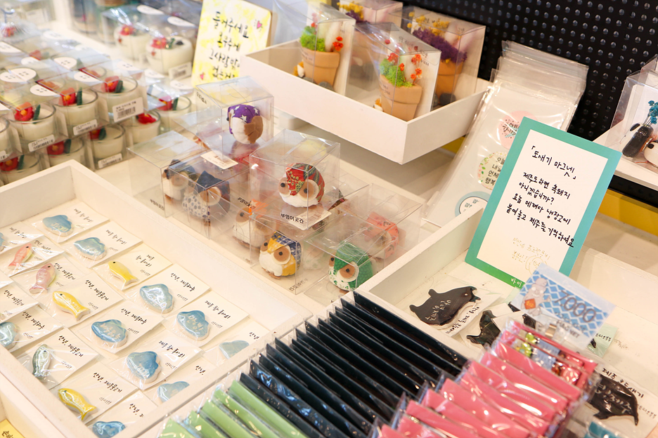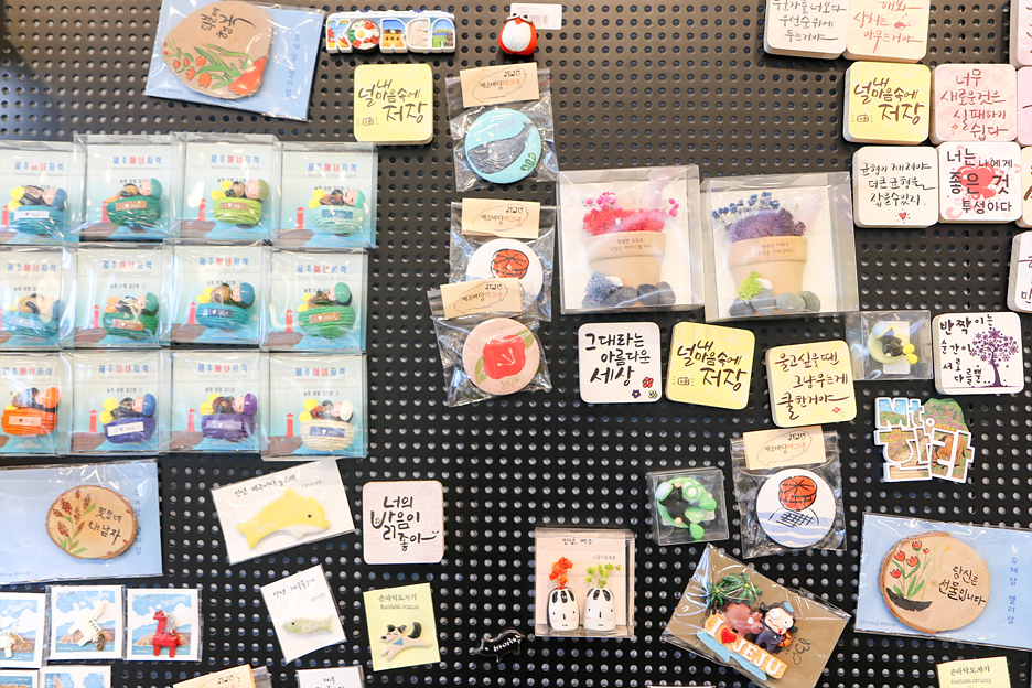 이 외에도 여러 모양의 간세인형과 키링은 물론 마그넷, 배지 등이 있어 볼거리가 풍성했던 바이제주, 제주도 최대 기념품샵답게 다양한 종류의 소품이 있어 구경하는 데 시간이 꽤 소요된다.