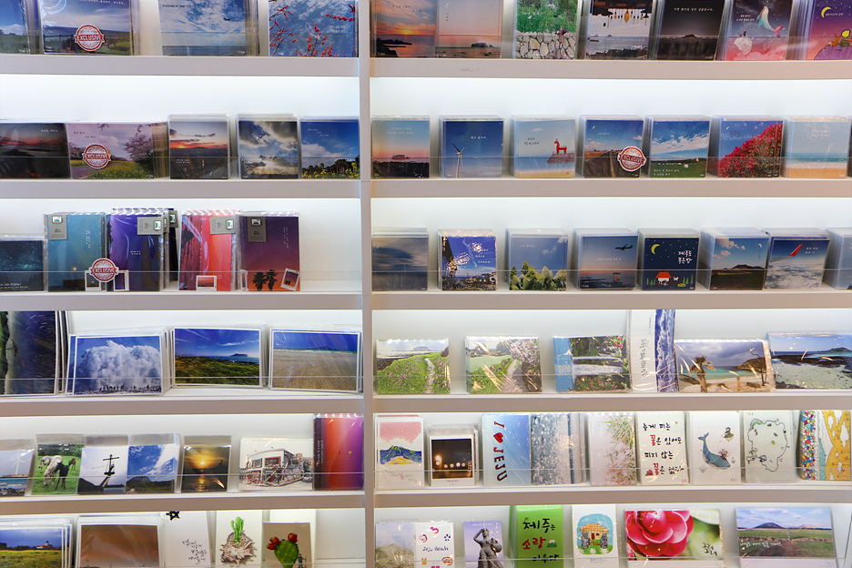 제주도 선물 추천 제주공항 근처 바이제주에는 제주도에서 찍은 여러 풍경을 담은 엽서를 1장당 1,500원에 판매하고 있다. 참고로 바이제주 공식 인스타그램을 팔로우하고 카운터에 있는 직원에게 보여주면 엽서 두 장을 무료로 받을 수 있다고 한다.