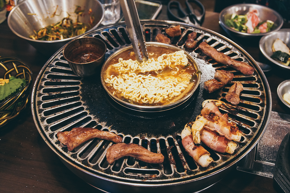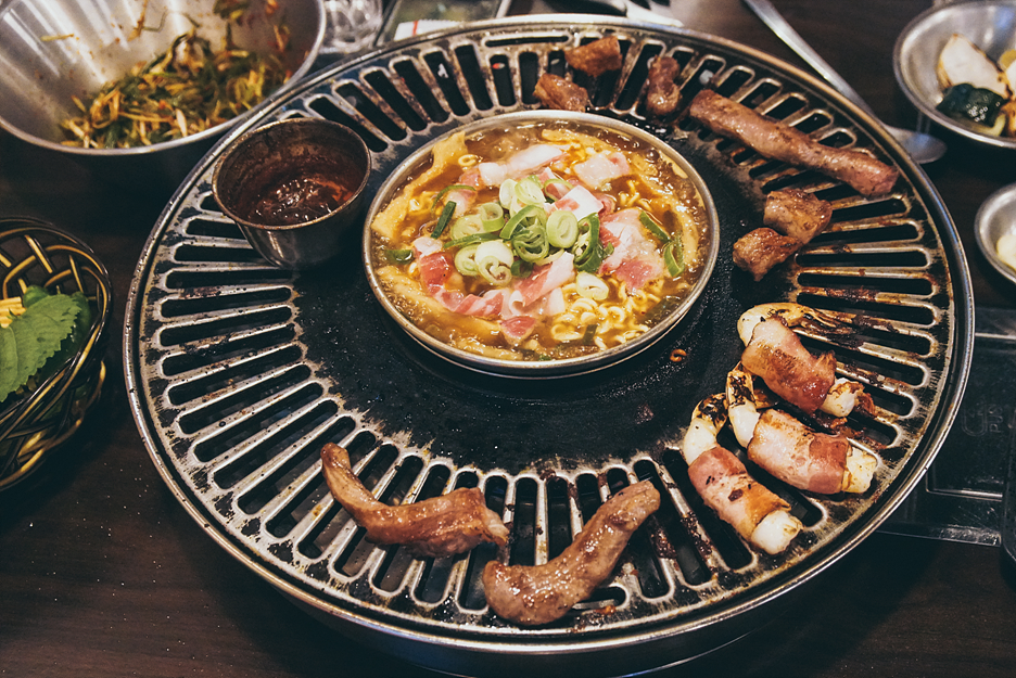 제주산이 아닌 스페인산 이베리코 흑돼지이지만 가격은 그보다 훨씬 저렴하며 베이컨 새우말이, 모듬야채꼬치, 라면까지 먹을 수 있기에 제대로 포식할 수 있는 곳으로 만족스러웠던 기억이 나는데 오랜만에 다시 가보니 이전보다 훨씬 많은 사람들로 자리가 채워져 있었다.