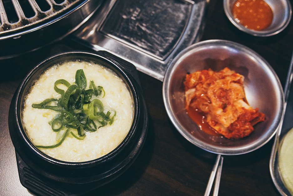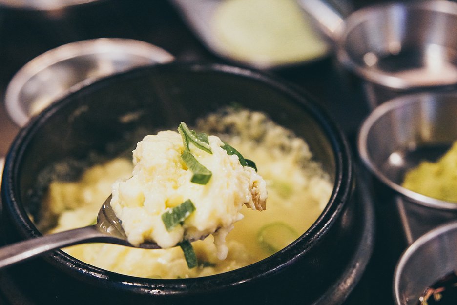 제주도 흑돼지 맛집 하몽돼지에서는 고기와 함께 곁들여 먹기 좋은 밑반찬과 함께 메인메뉴가 나오기 전 술안주로 먹기 좋은 계란찜이 뚝배기에 가득 담겨 나온다.