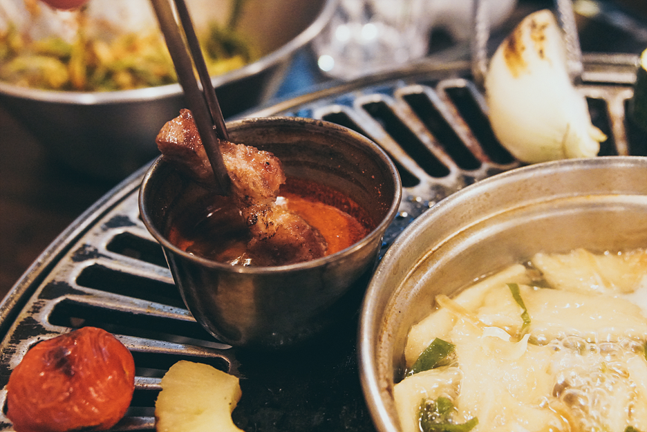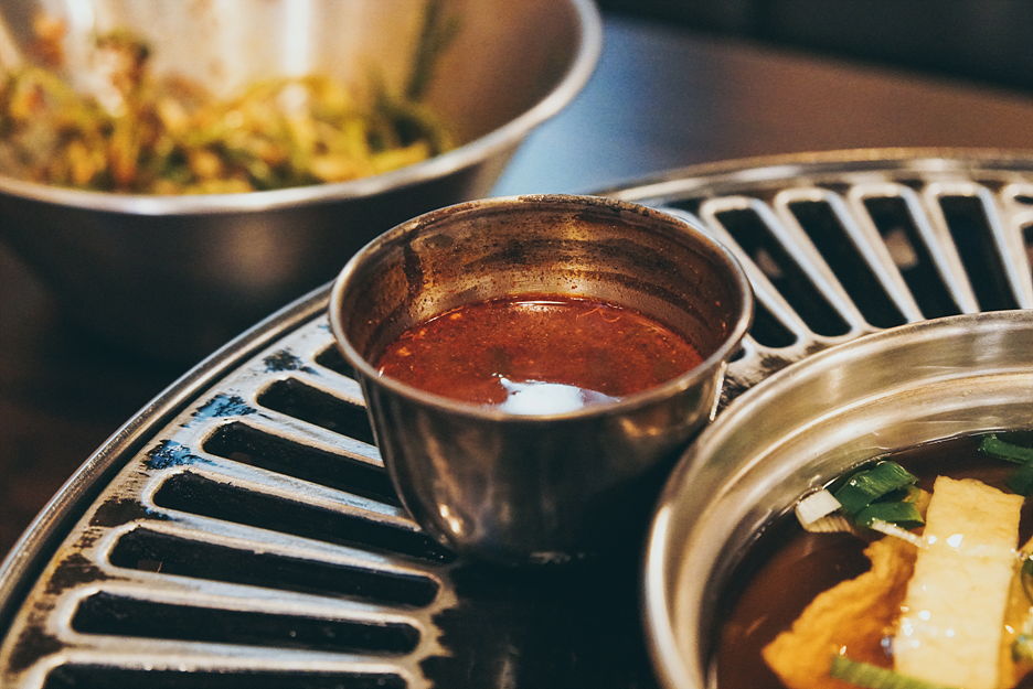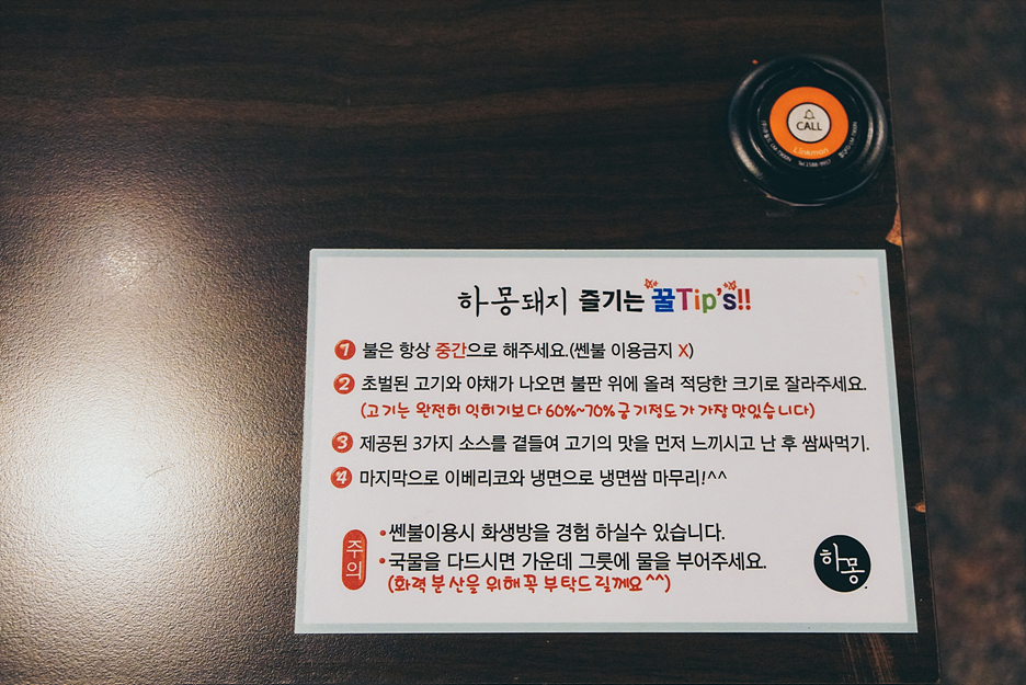 고기를 주문하면 직원이 멜젓이 필요하냐고 묻는다. 멜젓이란 제주도 서귀포 지역에서 어획되는 큰 멸치를 염장하게 담근 젓갈로 평소 고기를 먹을 때 자주 찍어 먹기에 주문해봤다.