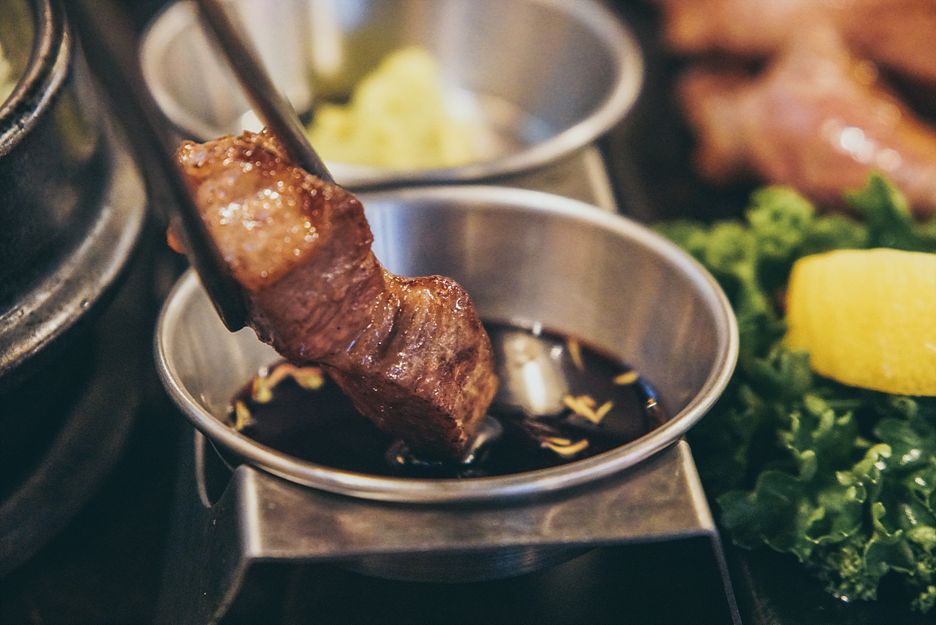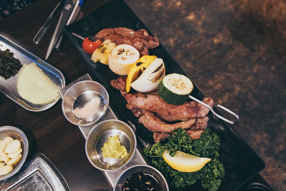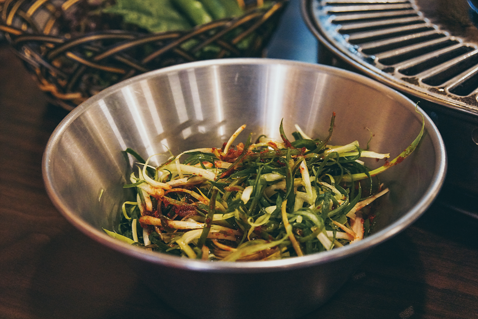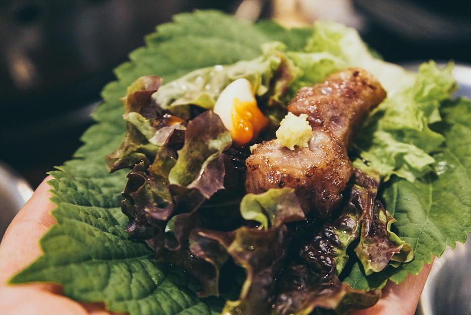 상추와 깻잎으로 쌈을 싼 후 와사비를 찍은 스페인 이베리코 흑돼지에 마늘까지 곁들여 먹으니 1인분 기준 14,000원에 먹는 것치곤 가성비가 무척 훌륭하다는 생각이 들었다.