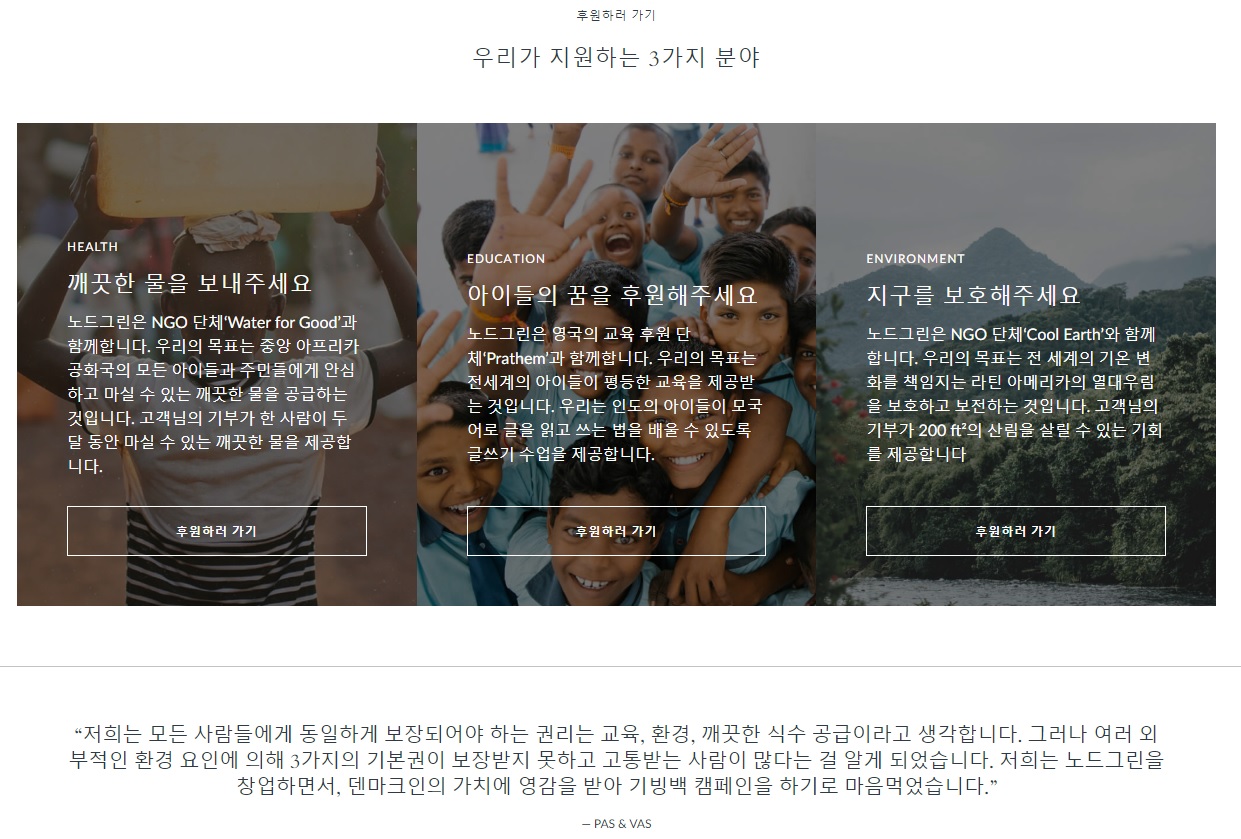 유럽에서 남자 시계 추천으로 인기가 높은 노드그린 시계는 구매 시 Giving Back 캠페인을 통해 식수, 교육, 환경 중 한 가지를 선택해 기부 프로그램에 참여할 수 있다는 점에서 타 시계 브랜드와 차별화를 뒀다.