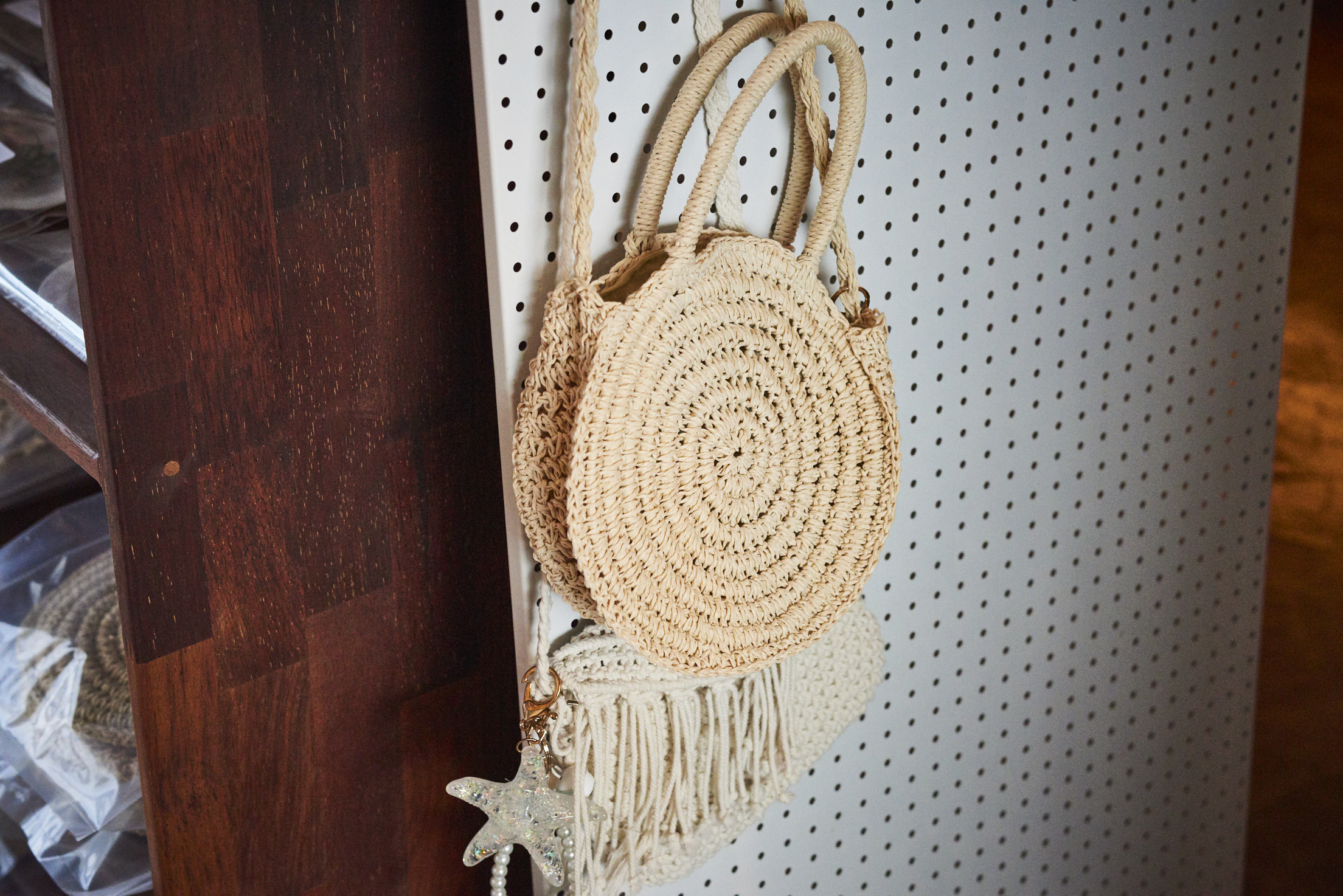요즘 같이 더운 여름에 어울리는 시원한 소재의 제주 기념품 가방이에요. 사장님의 말씀으로는 라탄 소재로 제작됐다고 하는데 제주 기념품 월정스캔들 앞 월정리해변을 배경으로 가방을 들고 사진을 찍으면 무척 예쁘게 나올 것 같았어요.