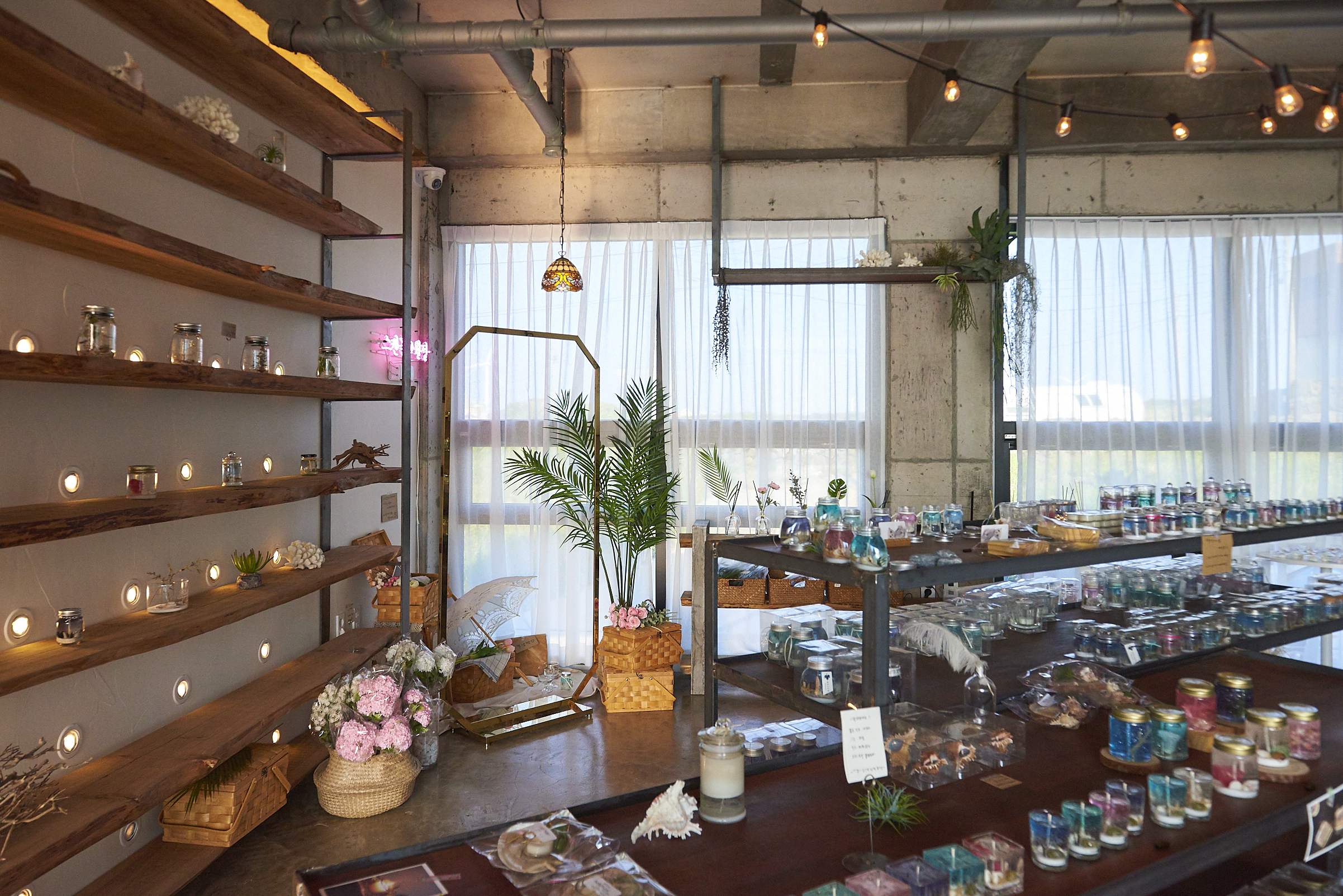 3층으로 올라가면 캔들을 직접 만들어볼 수 있는 체험스튜디오가 있었는데, 저희는 구매가 목적이라 곧바로 2층으로 이동했어요. 가자마자 환하게 저희를 반기고 있는 네온사인이 눈길을 끌더라고요.