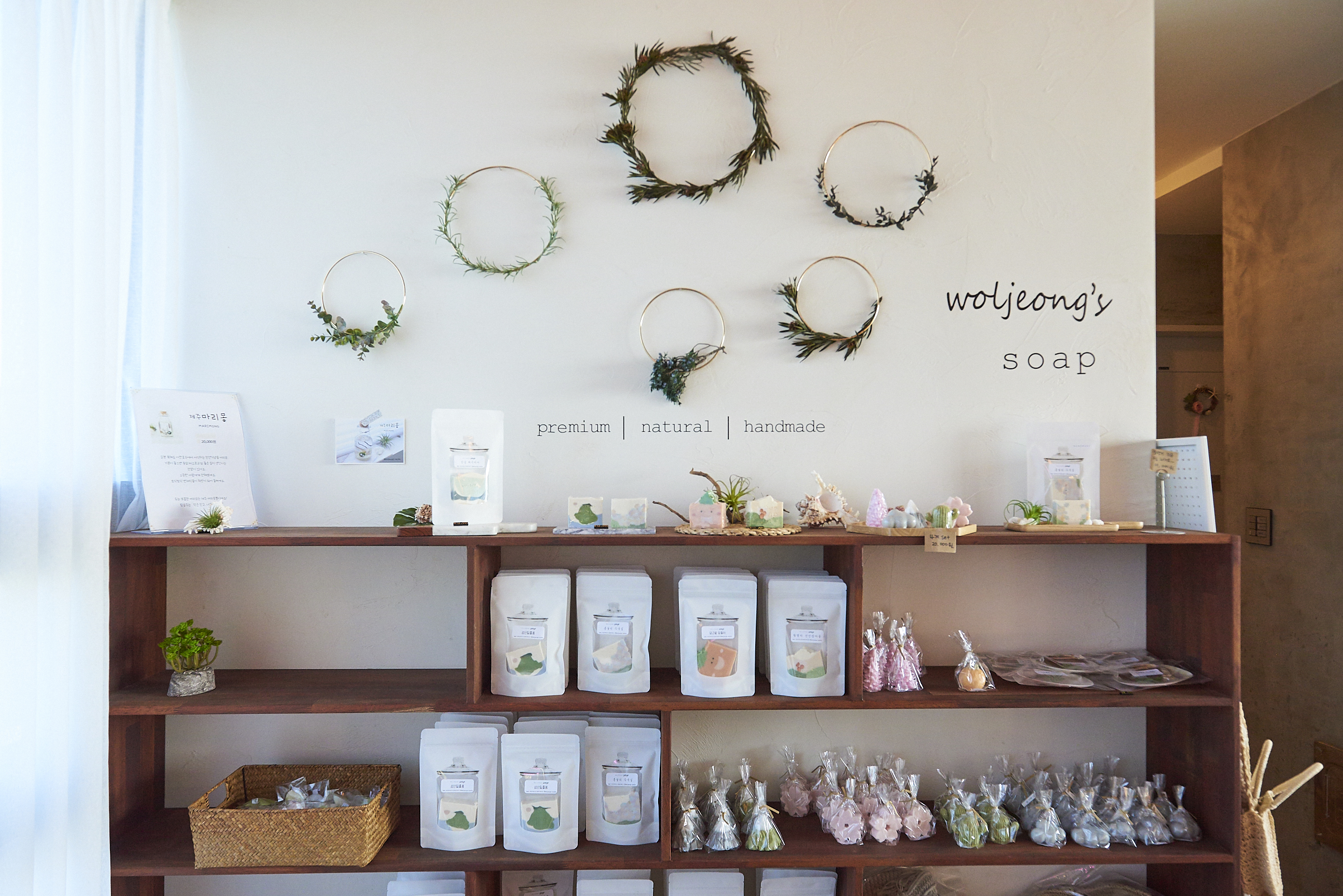 아기자기한 모양의 귀여운 천연 비누예요. 선인장, 동백 등을 테마로 만들어진 것 같았는데요. 그중 두 팔을 벌리고 있는 듯 한 선인장 보기만 해도 깜찍해 바로 장바구니에 담았답니다. 이렇게 작은 사이즈는 아이들이 있는 집에 선물로 주면 좋을 거 같더라고요.