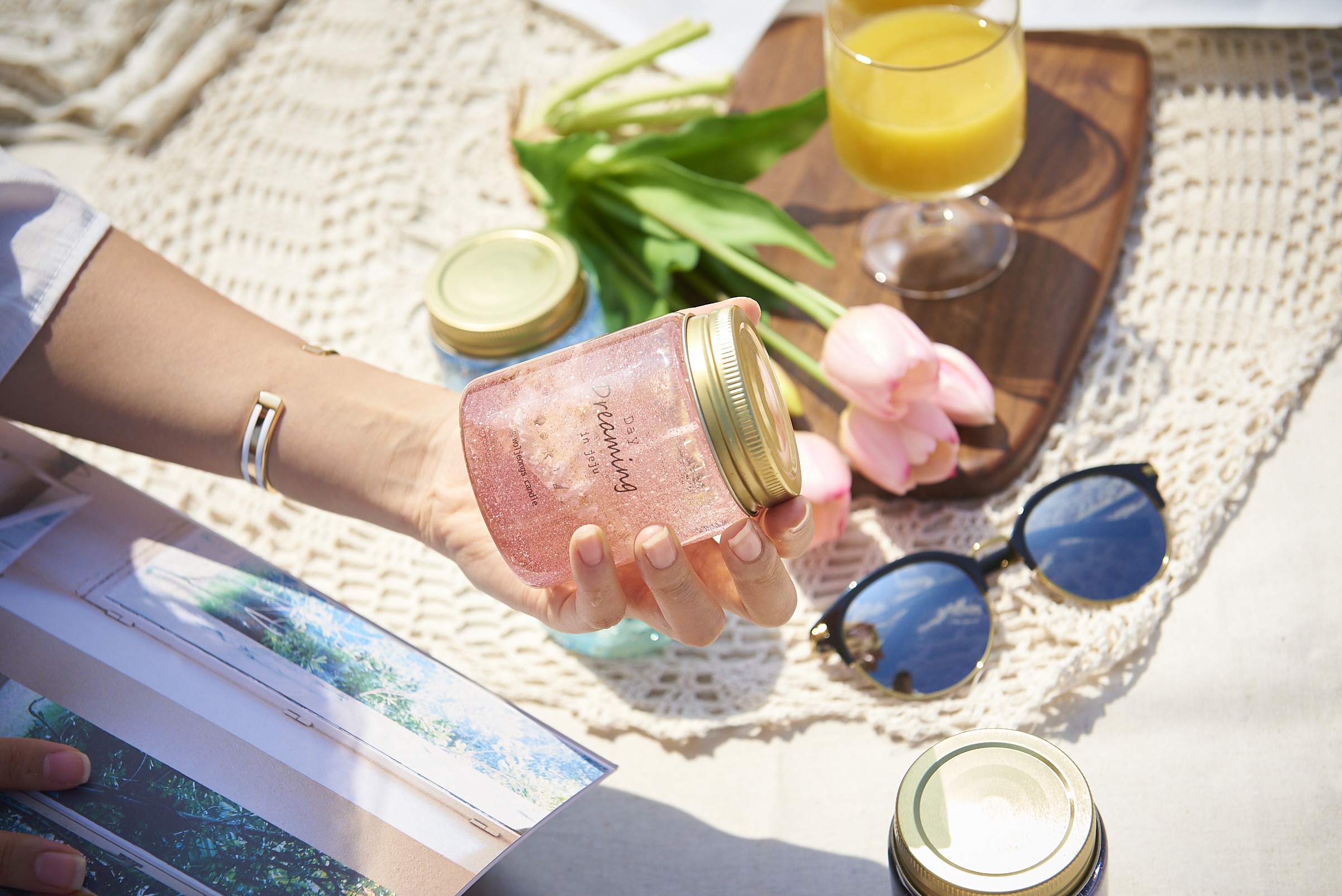 보는 것만으로도 제 기분을 좋게 해주는 캔들이에요. 제주도에서 유명한 월정리해변을 배경으로 캔들을 담으니 무척 예쁘더라고요. 여러분도 제주 기념품 월정스캔들에 가시면 에메랄드빛 바다를 배경으로 제주 기념품을 담아보세요.