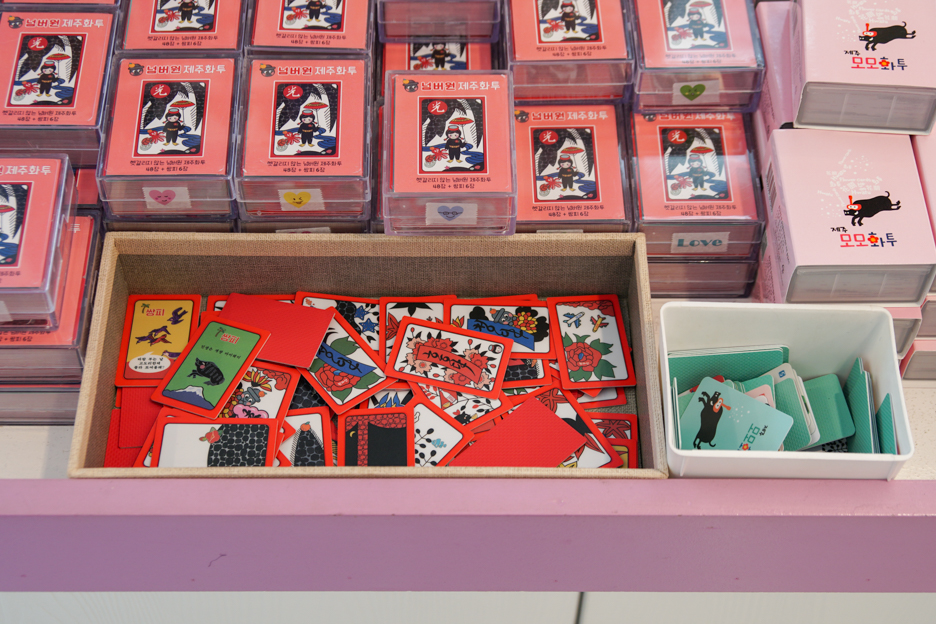 바이제주로 들어오기 전에 봤던 넘버원 제주화투뿐만 아니라 일러스트 그림으로 감성을 담아낸 모모화투와 트럼프카드도 있었다. 카드마다 샘플을 통해 디자인을 확인할 수 있어 제주도 기념품을 찾는 분들이라면 참고해보자.