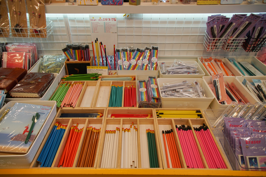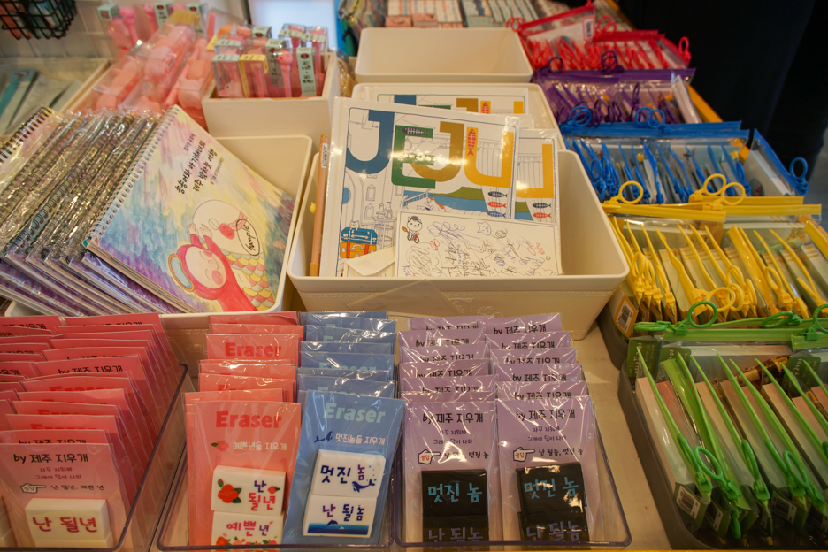 총 스무 개의 색상에 제주도 사투리와 같은 글귀를 담아낸 지우개연필과 지우개도 있었으며 색칠공부를 할 수 있는 컬러링북도 있는 등 학용품 종류 또한 다른 기념품처럼 다양하게 구성되어 있었다.