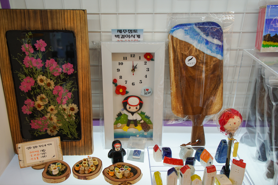 원목으로 제작된 도마뿐만 아니라 제주해녀와 동백꽃을 담아낸 벽걸이 시계 등 제주공항 면세점 근처에 갈 때마다 새로 보이는 신제품이 있어 제주도에 갈 때마다 들려서 구경해도 재밌을 것 같다.