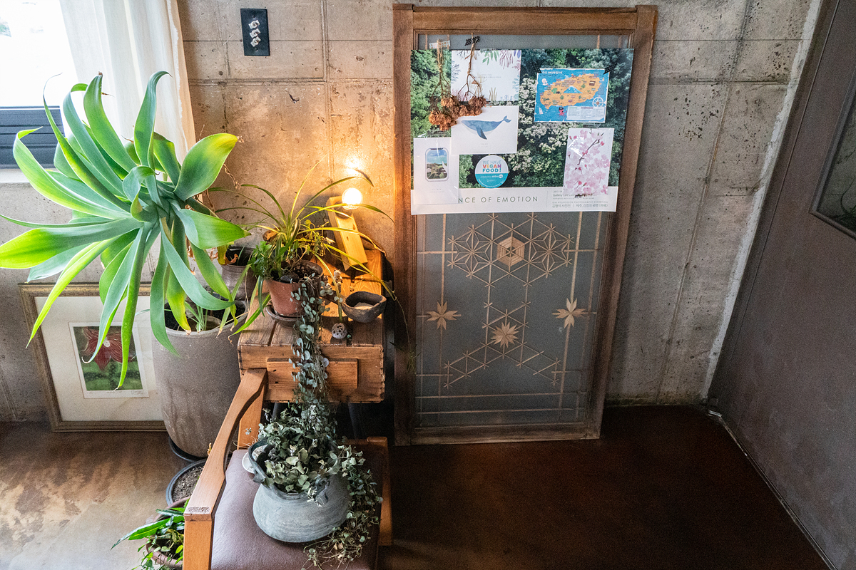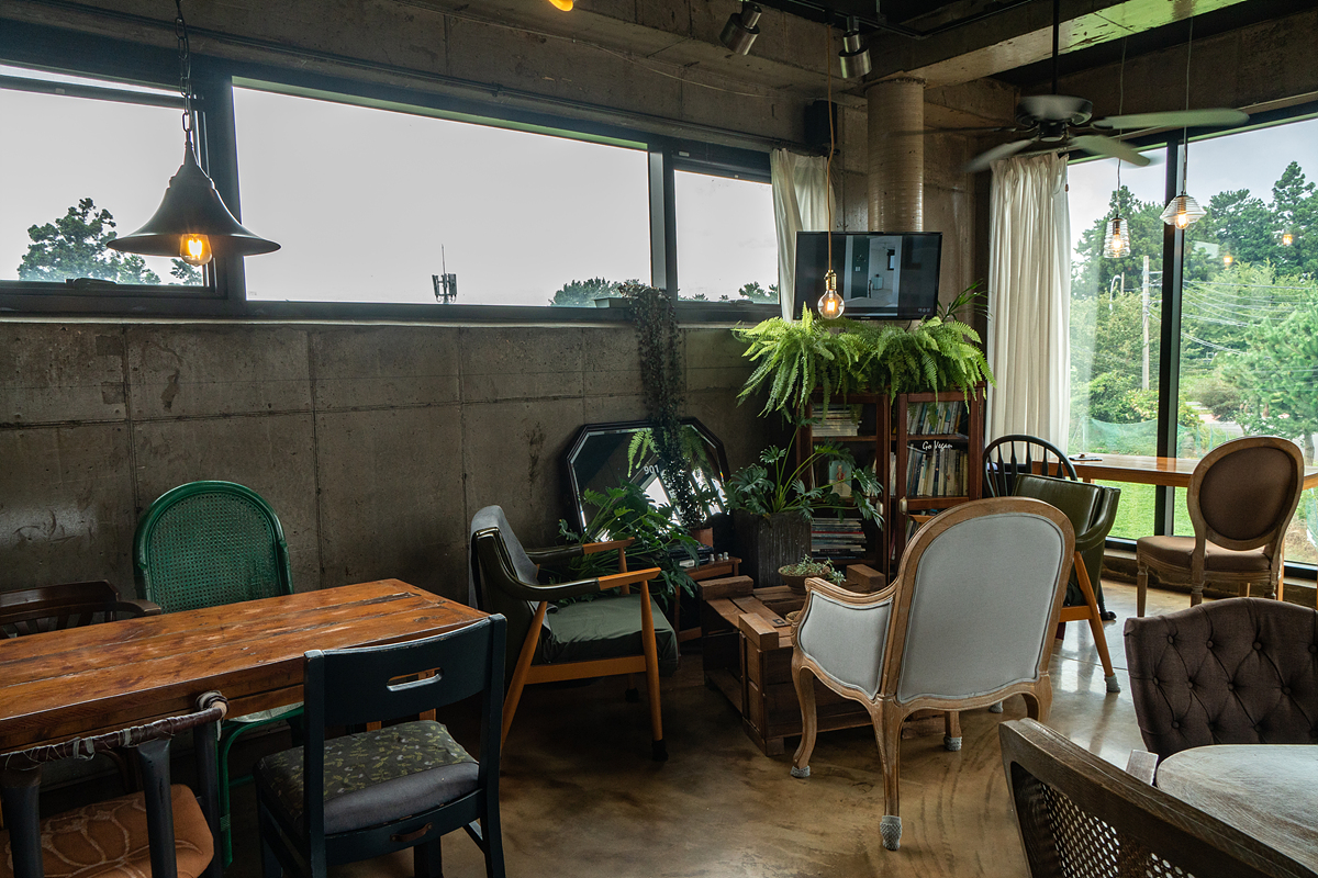 계단을 따라 2층에 있는 제주 카페901로 들어가면 채식, 비건을 테마로 운영되는 곳답게 여러 꽃과 화분으로 꾸며진 인테리어를 볼 수 있다.