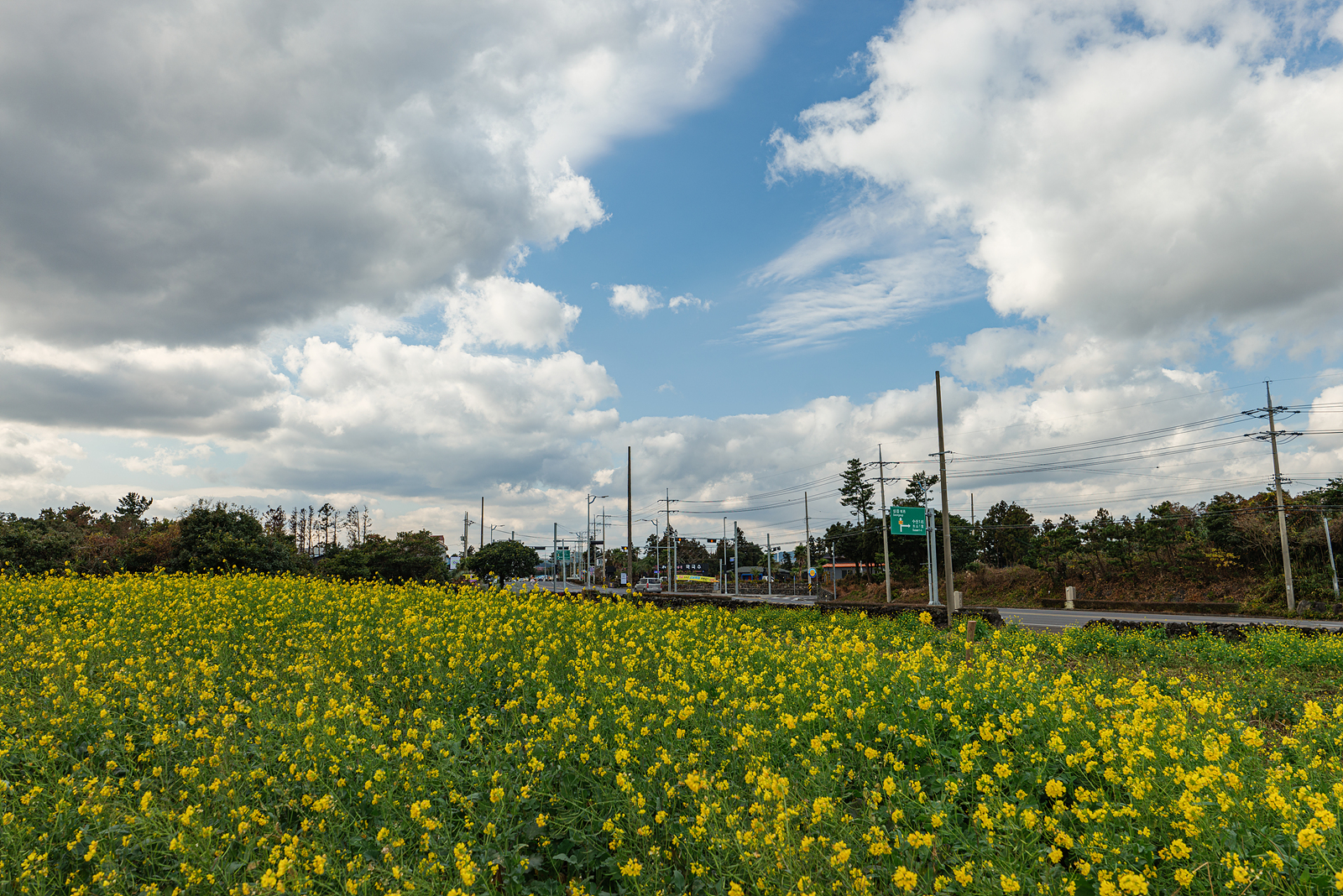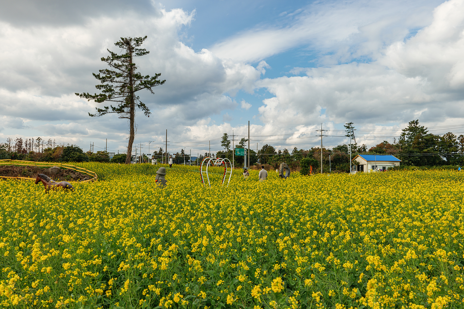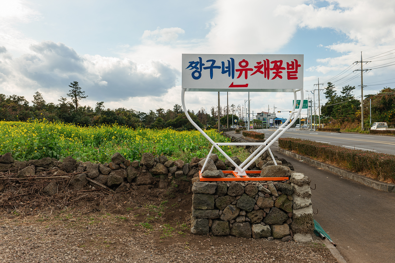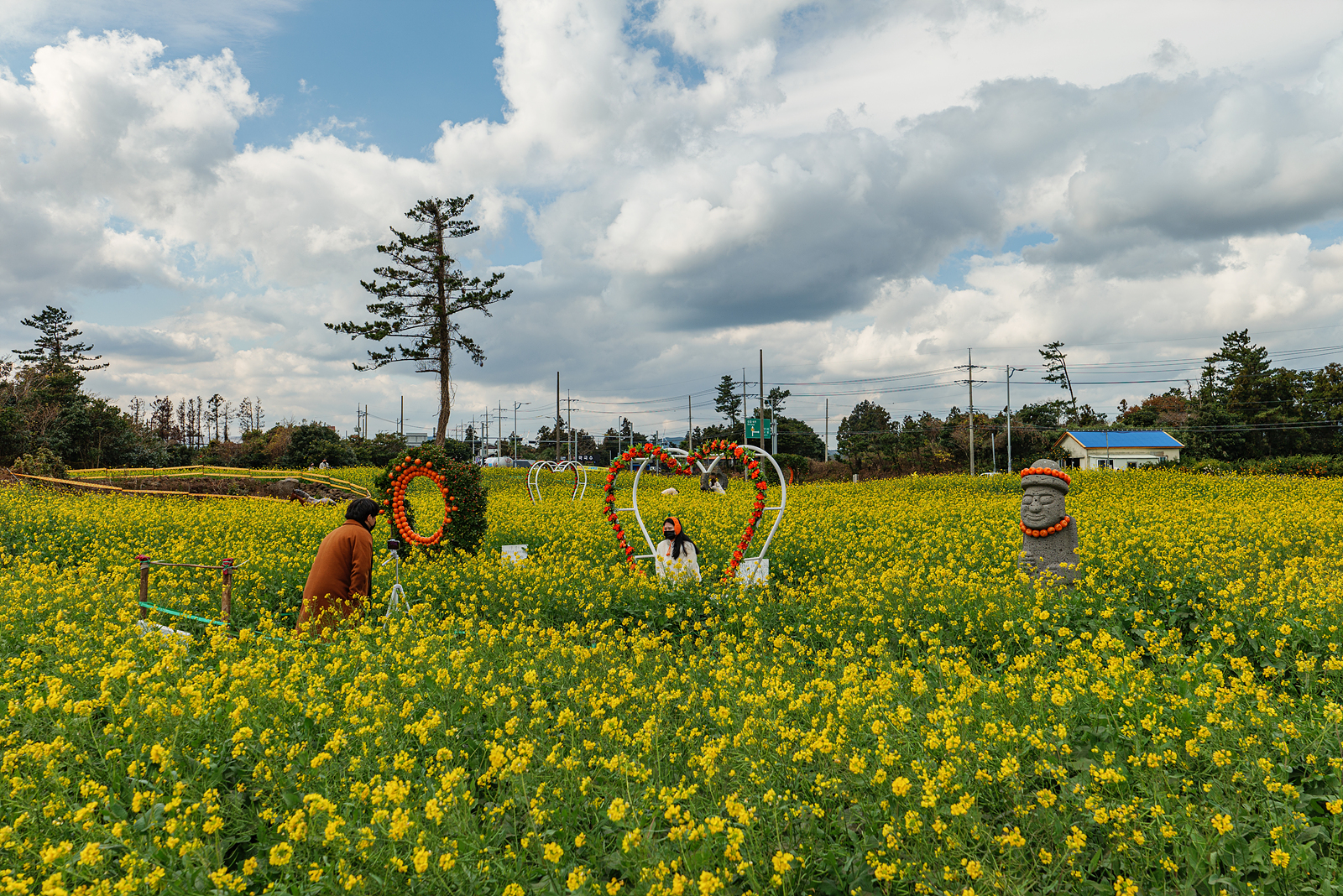 새로 이전한 제주 짱구네 유채꽃밭은 이전에 운영됐던 곳보다 공간이 더욱 넓어져서 방문객이 많더라도 타인의 방해 없이 사진을 찍기에도 충분해보였다. 이날 갔을 때는 하늘 위로 구름이 많아 하나의 그림 작품을 보는 듯한 느낌이 들었고 바람이 불지 않아 마음이 차분해지는 느낌마저 들었다.