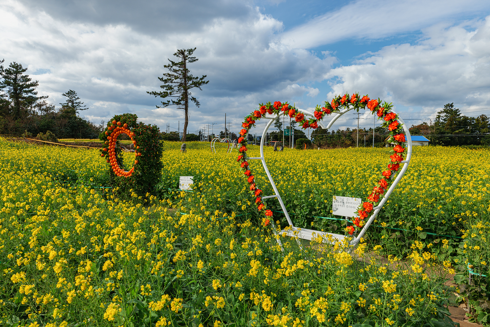 제주 유채꽃 피는시기 제주 짱구네 유채꽃밭 안쪽에는 방문객을 위해 마련된 여러 포토존이 가득해 단순히 꽃을 배경으로 사진을 찍는 게 아닌 제주도 감성을 온전히 가져갈 수 있기에 겨울철 제주도 여행을 하시는 분들 중 성산일출봉 쪽으로 간다면 이곳에 잠시 들려봐도 좋을 것 같다.