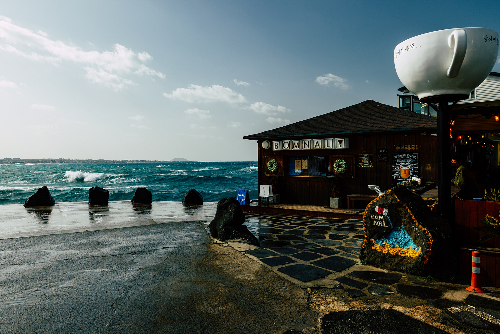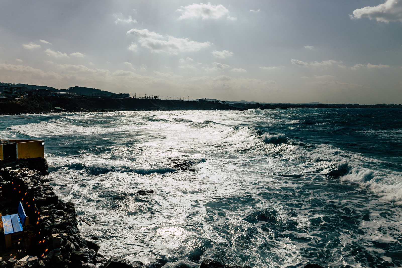 제주 애월 한담해안산책로의 대표 카페라 할 수 있는 봄날 앞에는 강풍에 파도가 심하게 불어 앞으로 조금 더 가면 몸이 다 젖을 정도였다. 멀리서 카메라 줌을 당겨 사진을 찍어봤는데 풍경이 무척 아름다웠고 오랜만에 바다를 가까이에서 볼 수 있어서 상쾌한 기분마저 들었다.