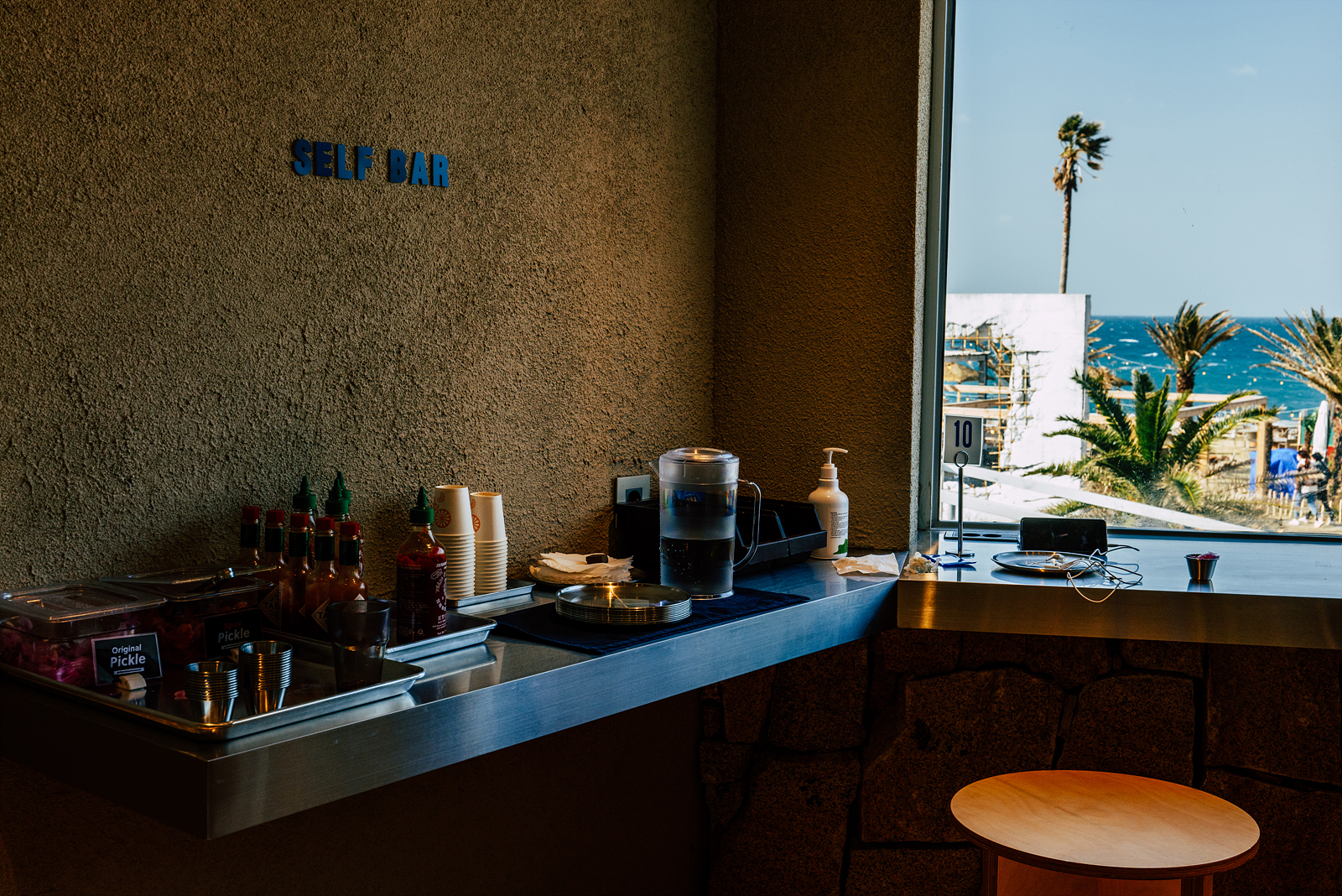 2층 매장에는 셀프바가 따로 마련되어 있으며 물, 물티슈, 케찹, 피클 등이 마련되어 있다. 주문한 버거는 2층에 머물러도 직원 분이 직접 가져다주며 반납 또한 따로 하지 않아도 된다는 점이 편리했다.