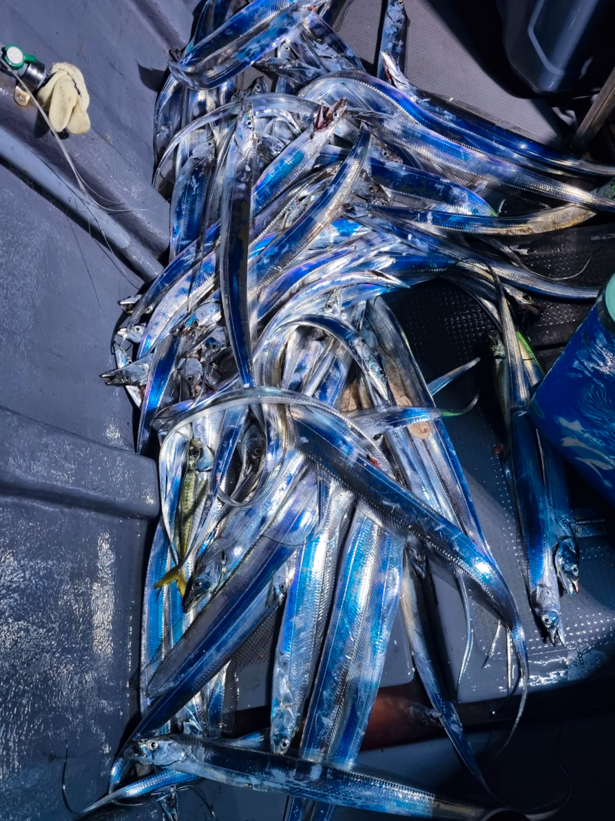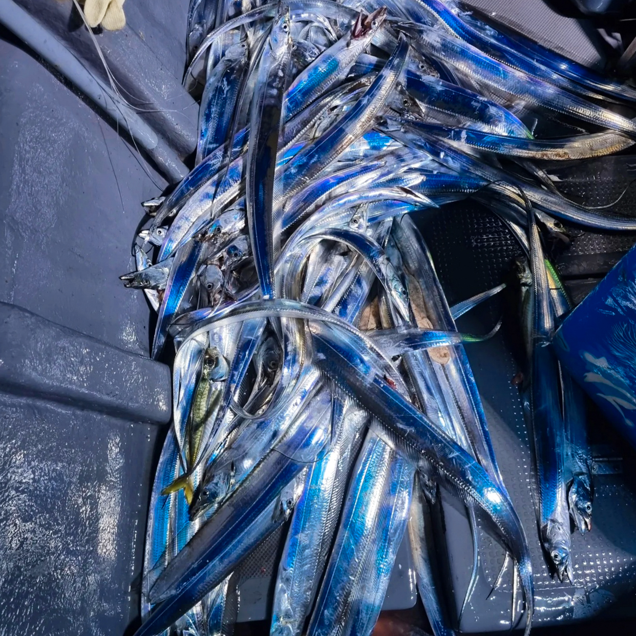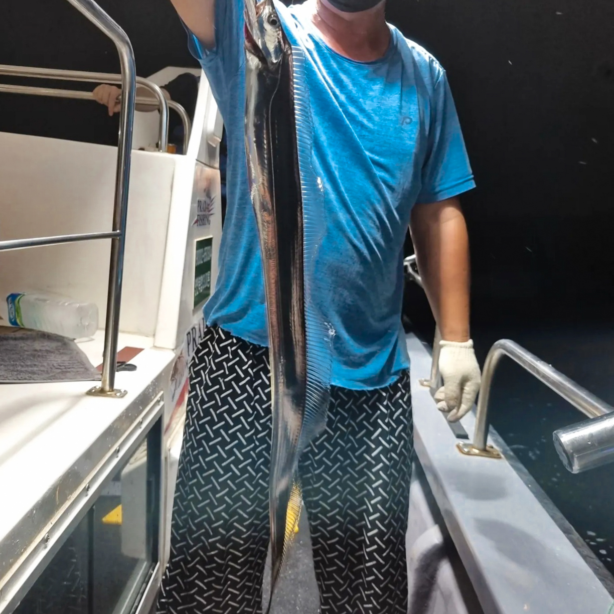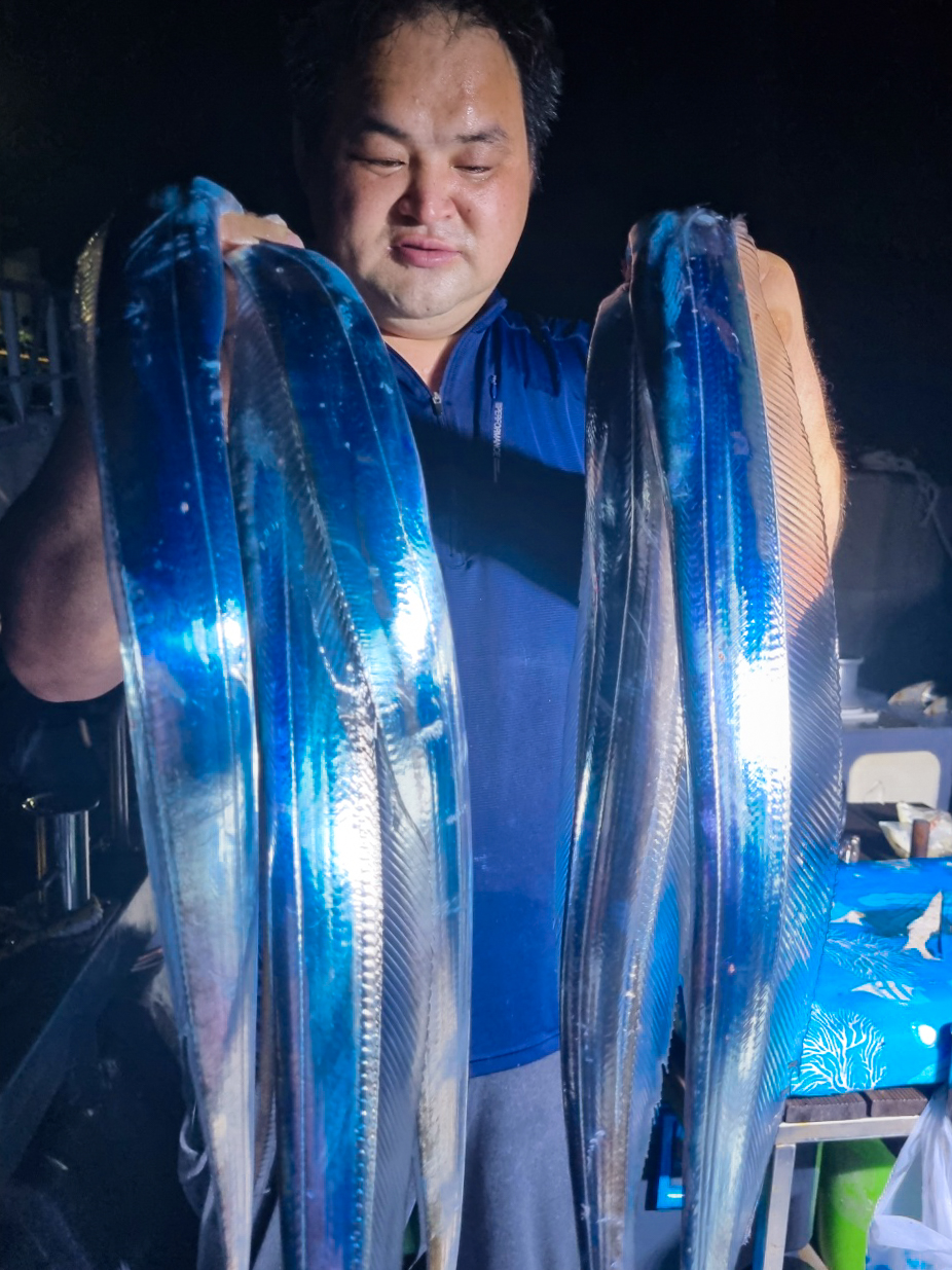 현재 제주도는 갈치낚시 시즌으로 사진에 보이는 것처럼 서귀포 프라다 선상낚시를 통해 길다란 은갈치를 많이 잡을 수 있다. 제주도 낚시 갈치 지깅은 1인 기준 장비를 포함해 체험료 10만 원이다.