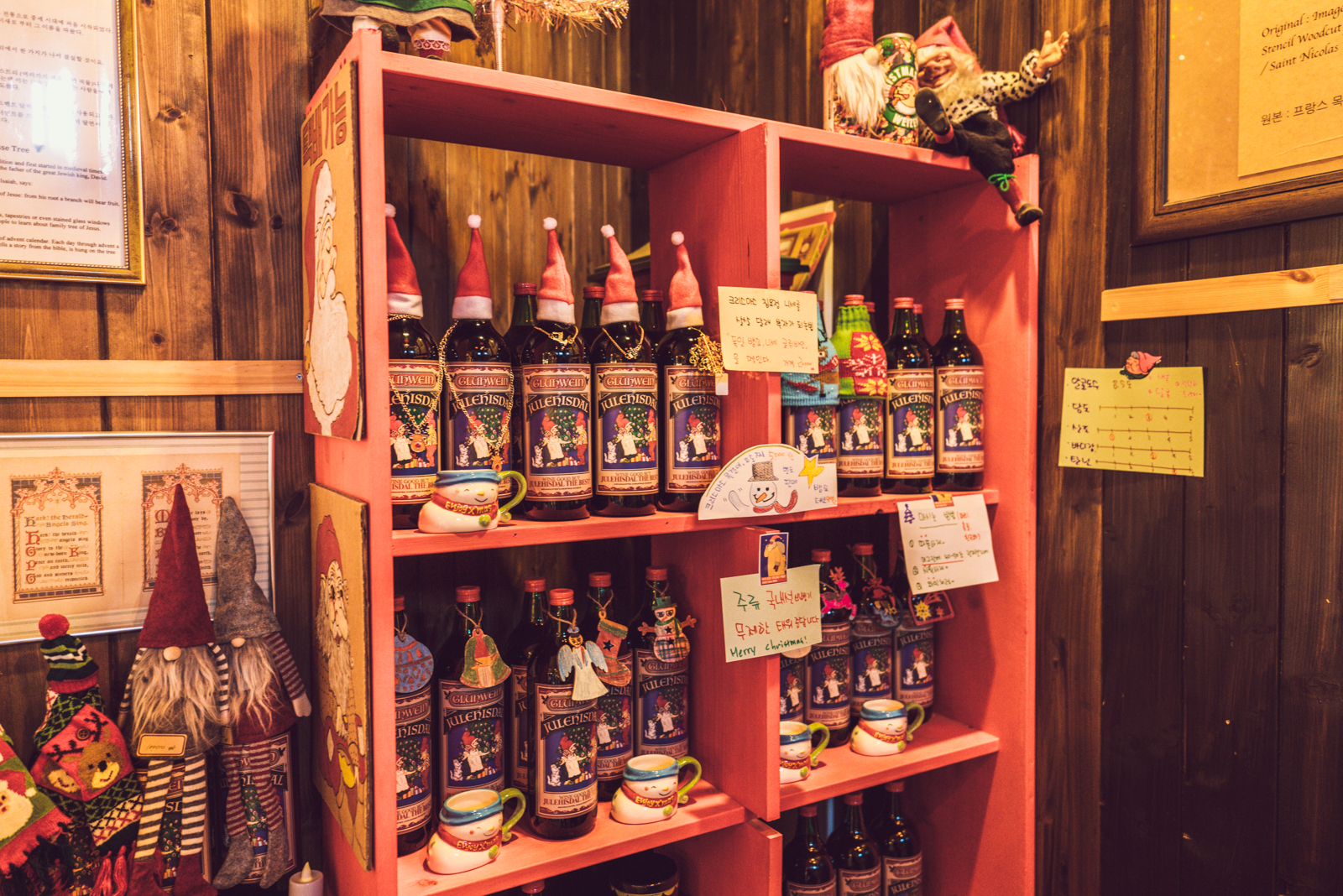 커플여행이나 데이트 장소로 이곳을 찾는 분들이 많이 찾는 상품으로는 와인과 뱅쇼가 있다. 독일 뱅쇼인 글뤼바인이 있었으며 가격은 한 병당 2만 원이다. 진열장에는 뱅쇼로 만들어 먹는 방법에 대해서도 적혀 있었으며 국내선 비행기 기내 반입도 가능하다고 안내되어 있었다.