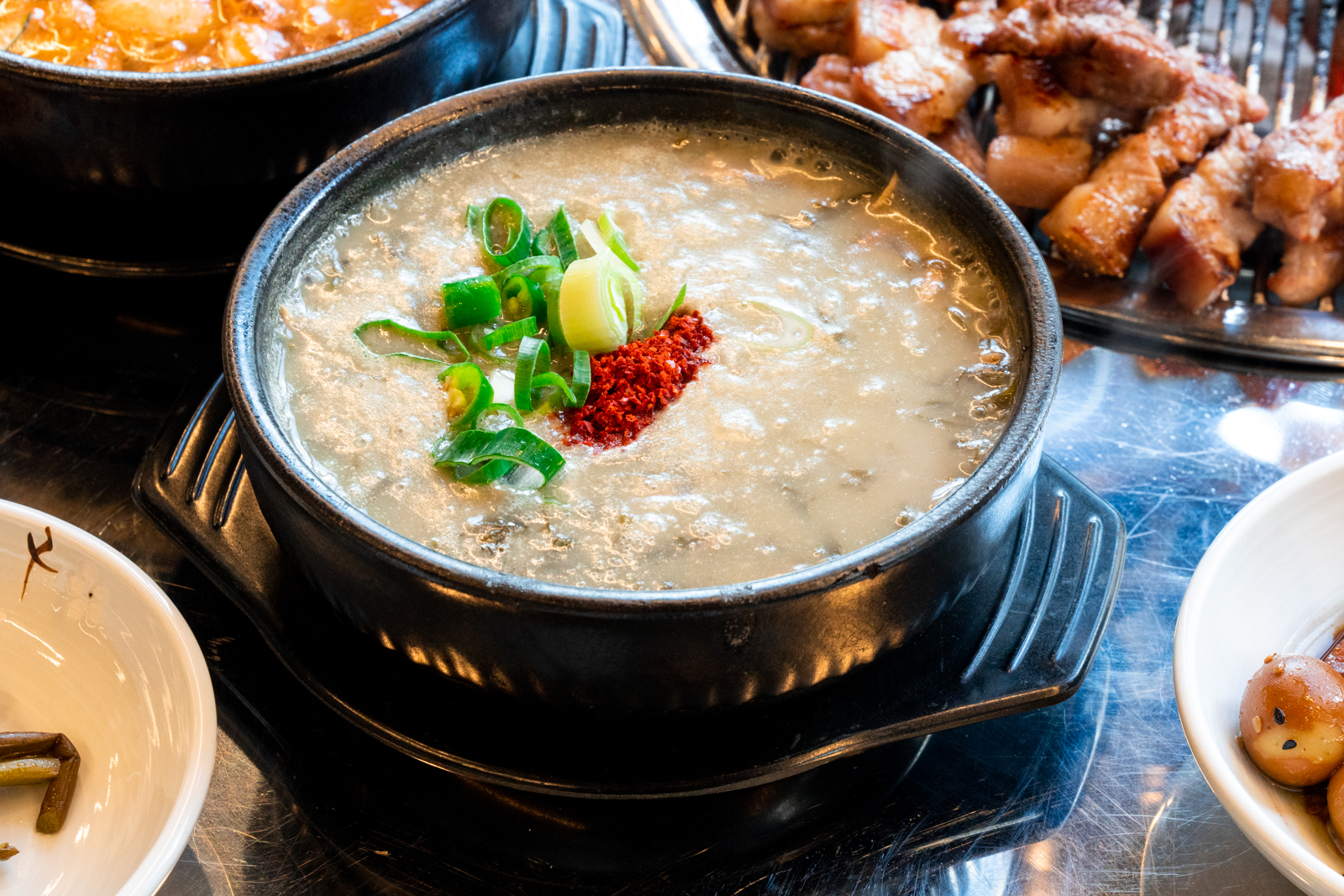 추자도산 멸치를 담궈서 만든 멜조림 또한 제주도 향토음식 중 하나다. 다른 식당에 가면 불판에 자그만한 그릇에 넣어주는 게 다인데 이곳은 뚝배기 가득 멜조림을 담아준다. 매콤하면서 멜젓 특유의 맛이 중독성이 강했다.