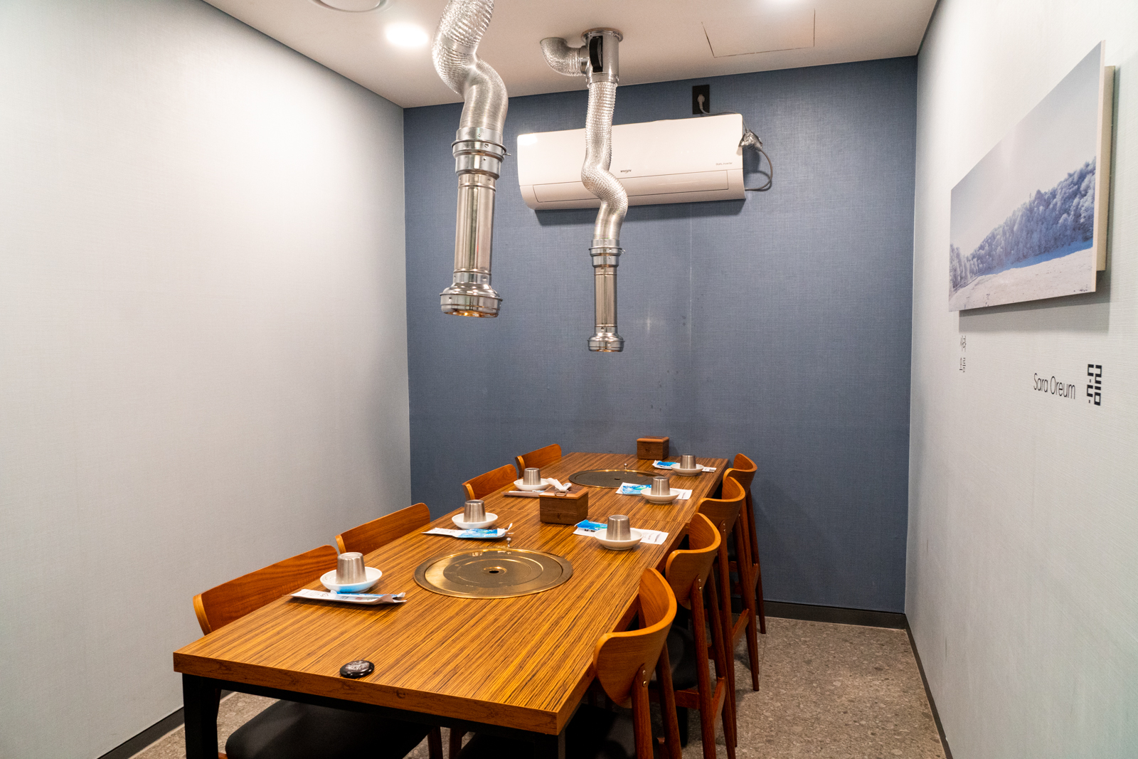 2층에는 조용한 분위기에서 가족식사나 회식, 모임 장소로 활용할 수 있는 룸이 곳곳에 마련되어 있는데 제주도 오름명으로 룸 이름을 적어놨고 방 안에는 각 오름의 사진을 담아냈다는 점이 눈길을 끌었다.