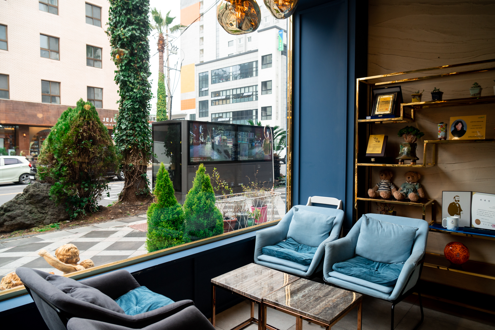 제주 연동 맛집 도도름 한우와흑돈은 삼무공원 사거리 앞에 있으며 1층은 카페, 2~3층은 흑돼지와 한우를 먹을 수 있는 공간이 마련되어 있었다.