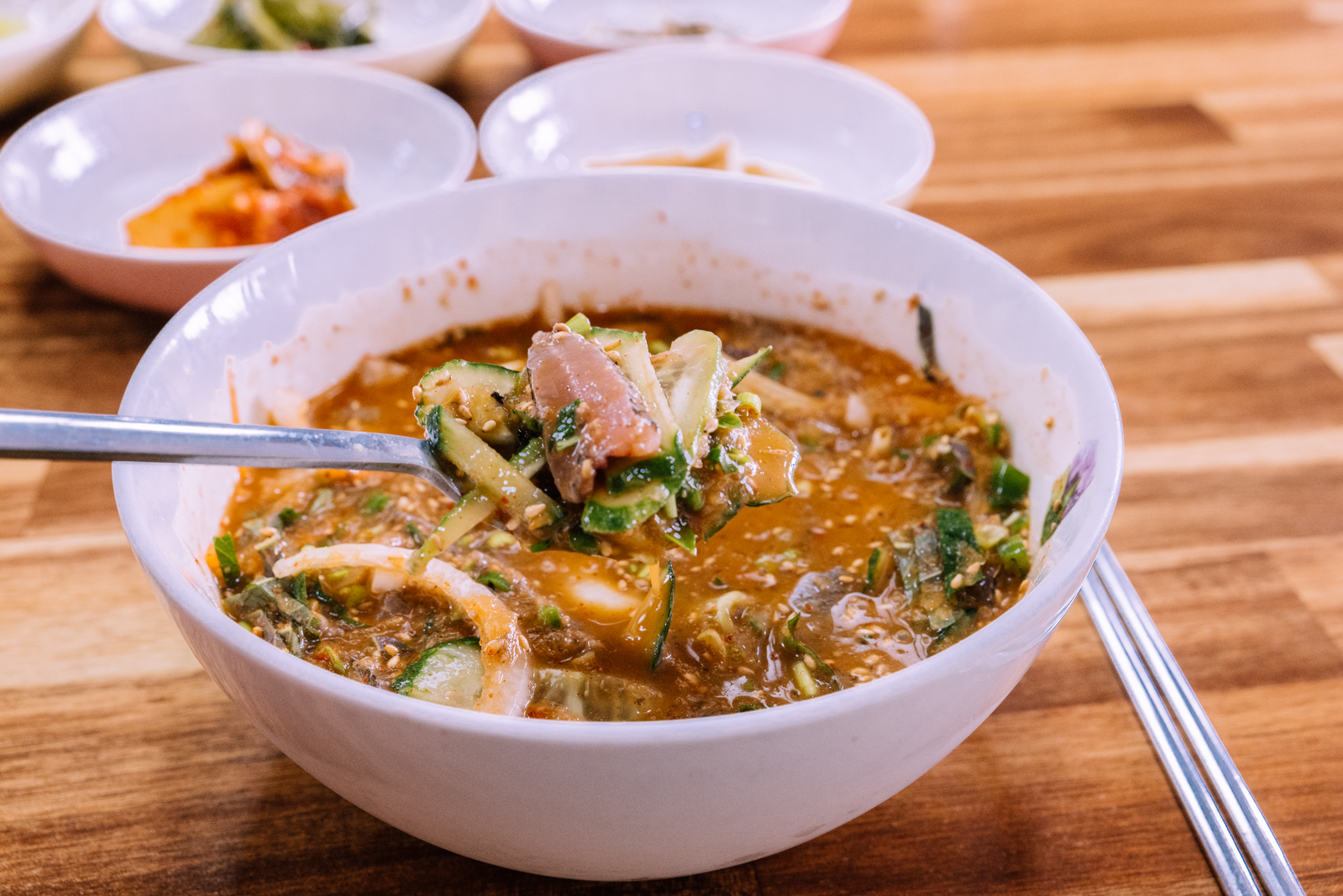 시원하면서 달콤새콤한 맛을 자랑하는 제주 자리물회는 한치물회와 비슷하면서 식감이 달랐다. 한치가 부드러운 느낌이라면 자리돔은 살짝 까끌했는데 가시가 연해 먹는 데 불편함이 전혀 없었다.