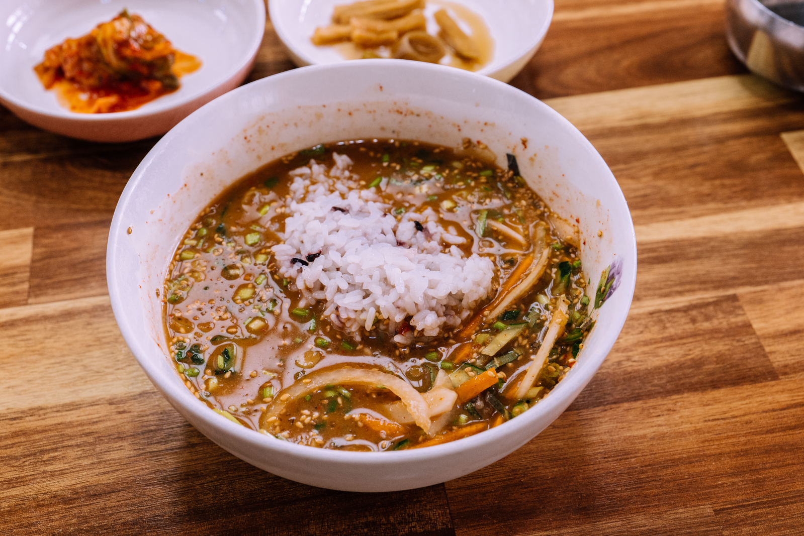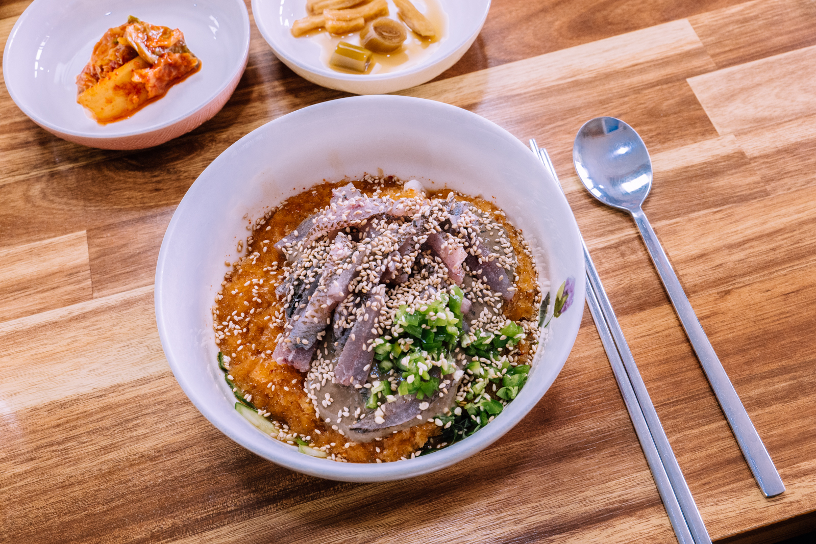 혼밥으로 먹었던 도두 어부의밥상 자리물회는 된장을 베이스로 만들어졌으며 평소 매운 음식을 먹지 못하는 내 입맛에도 알맞았다. 물회와 함께 나오는 밑반찬도 깔끔했고 건강식이라는 점에서도 마음에 들었다.