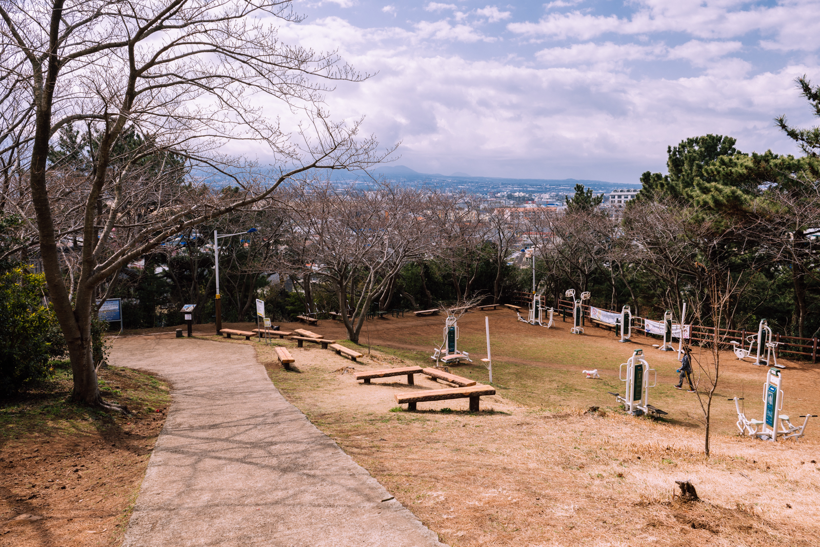 제주 올레길 17코스 도두봉 정상에서 드림타워가 보이는 방향으로 하산하면 여러 가지 운동기구가 설치된 공원이 나온다. 3월 말부터 4월초까지 이곳에는 벚꽃도 피기에 제주공항 근처에서 벚꽃 명소를 찾는다면 이곳으로 가봐도 좋다.