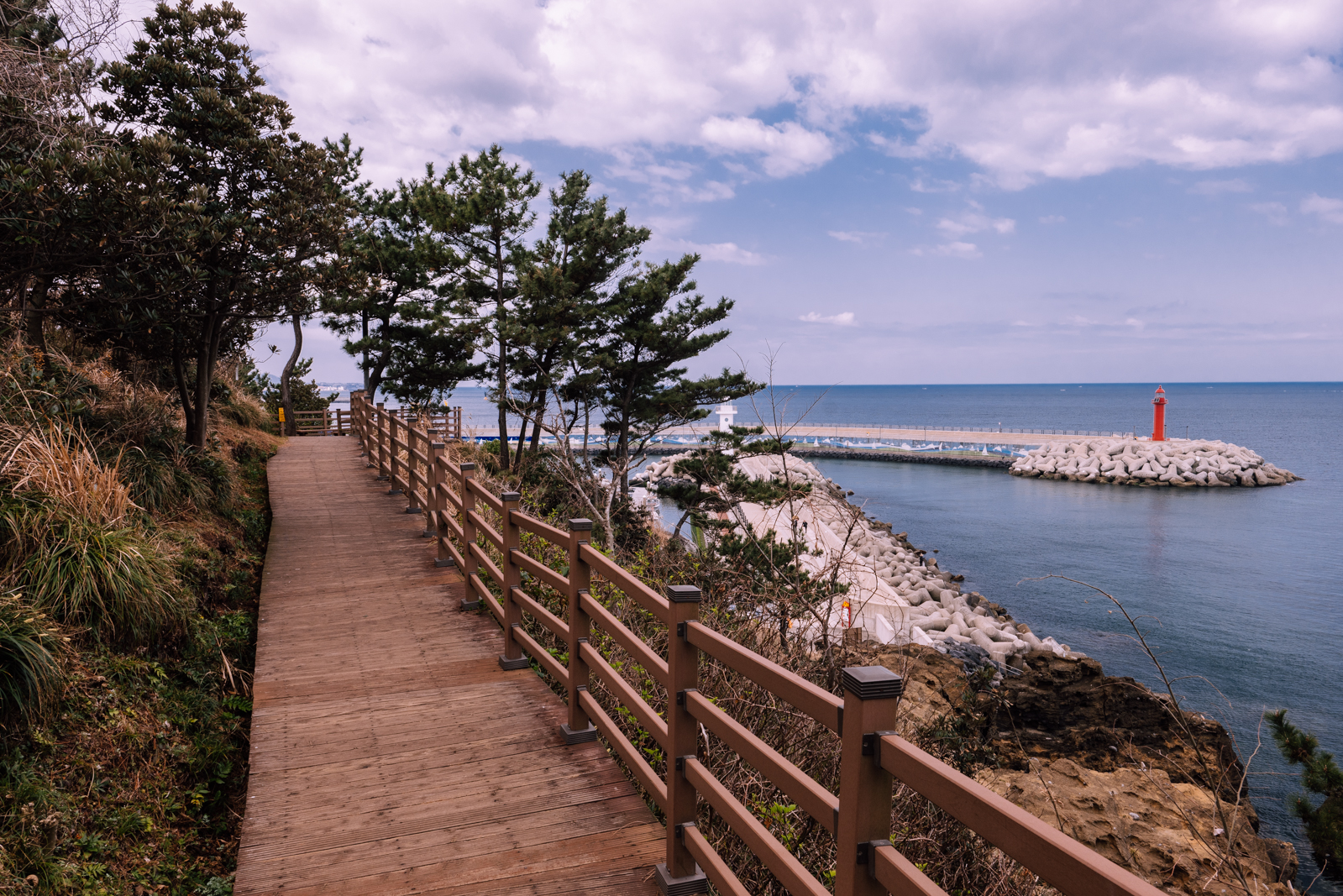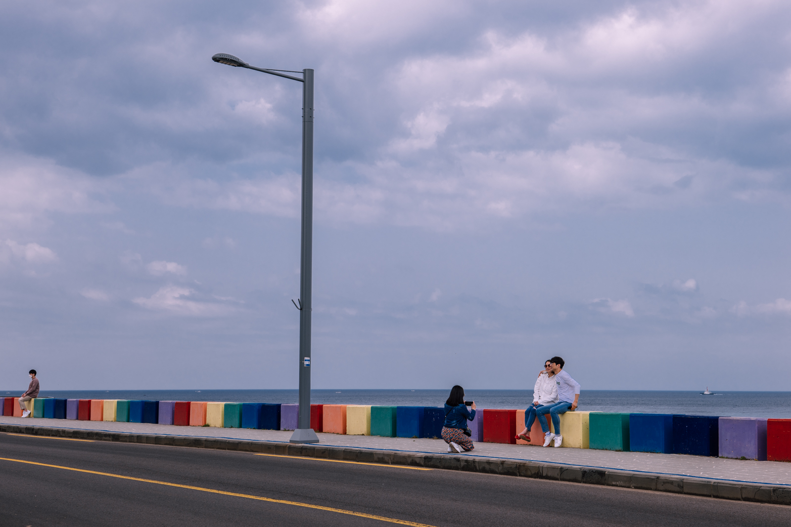 무지개 돌담의 길이가 길어 타인의 방해 없이도 사진을 찍을 수 있는데 제주 올레길 17코스를 찾았던 이날은 낮 시간인데도 흐렸다. 3월이 지나 4~5월에 가게 되면 이보다 더 화창한 풍경을 담을 수 있고 도두봉에는 벚꽂도 핀다.