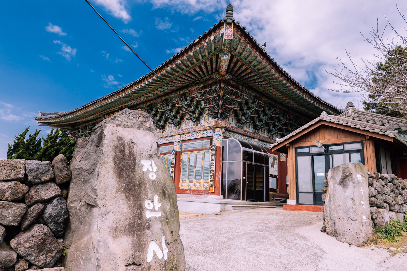 하산 후 바깥 도로로 나가는 길에는 제주 올레길 17코스 중 하나이자 보시의길 3구간인 제주 장안사가 나온다. 장안사는 지난 1950년 '법기암'에서 창건되어 1973년 봉월 스님이 주지로 부임한 후 1999년도에 대한일붕선교종으로 등록했으며 이후 관음정사로 개명했으나 자금부족으로 파산 직전까지 갔다가 법담스님에 의해 장안사로 새롭게 태어났다고 한다.