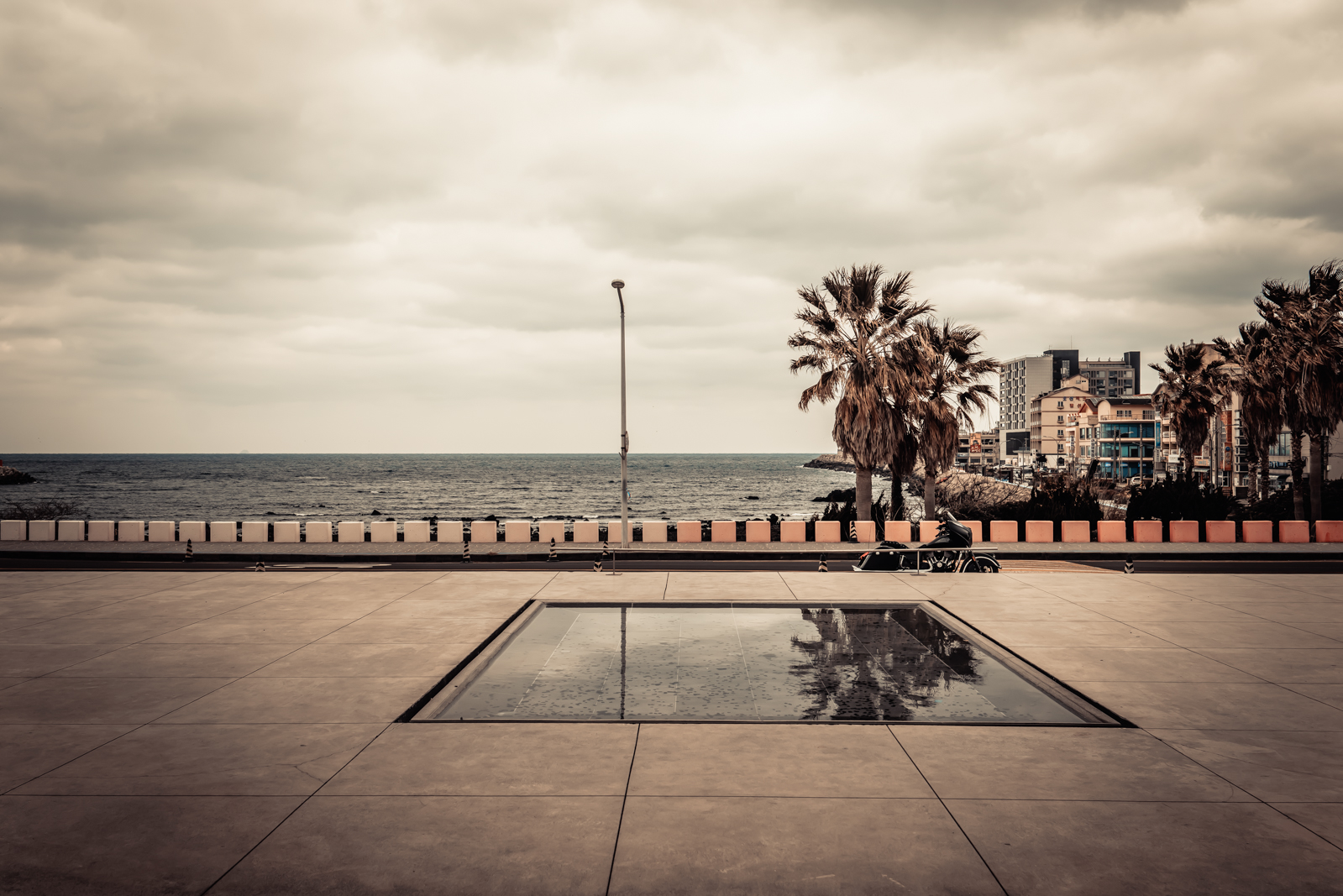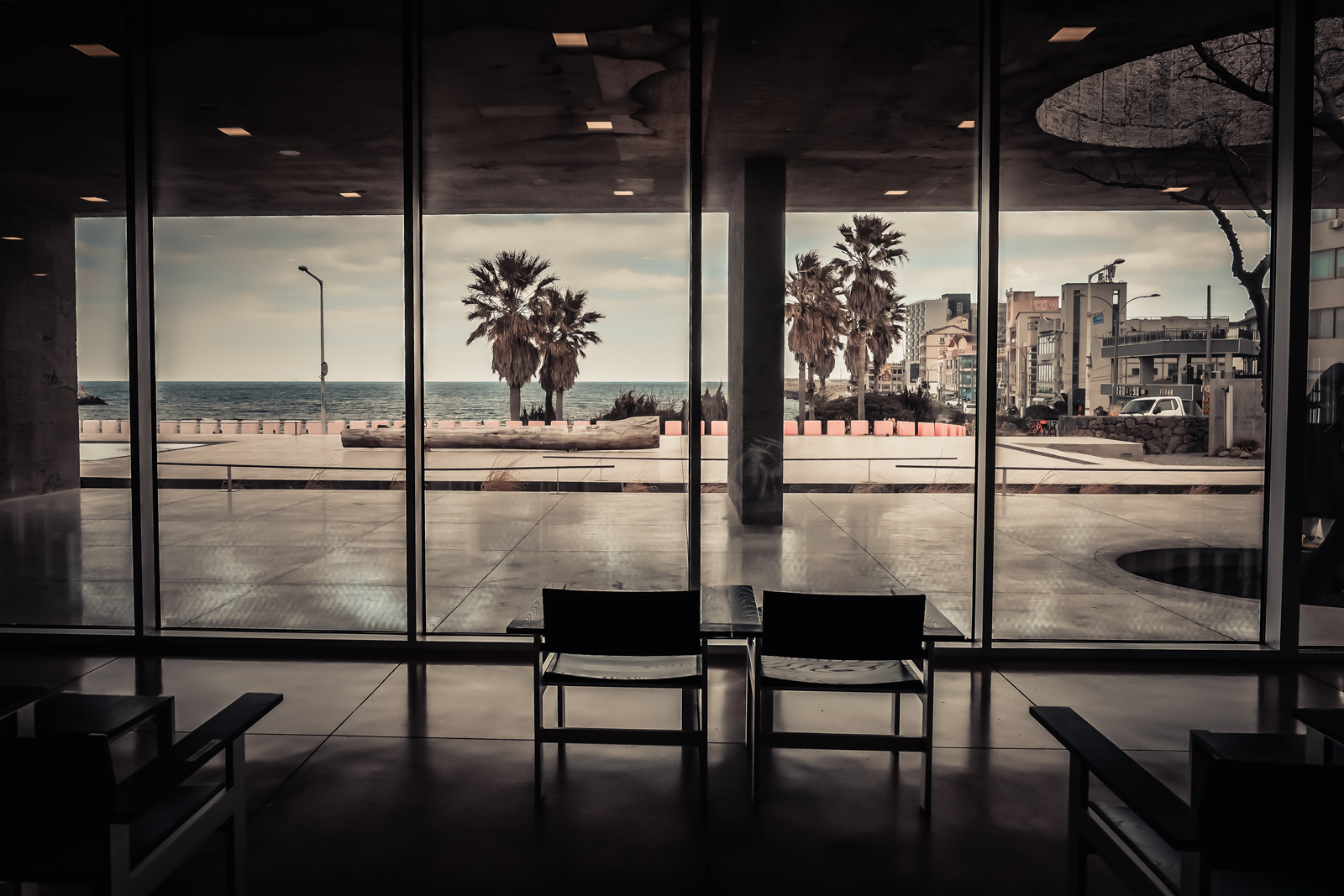 후문으로 가는 길에는 편하게 앉을 수 있는 탁상 테이블과 의자가 있었는데 전체적으로 모던하면서 깔끔한 분위기가 느껴졌다. 어느 방향으로 보든 바깥의 야자수와 바다가 보인다는 점도 특징이라 할 수 있다.