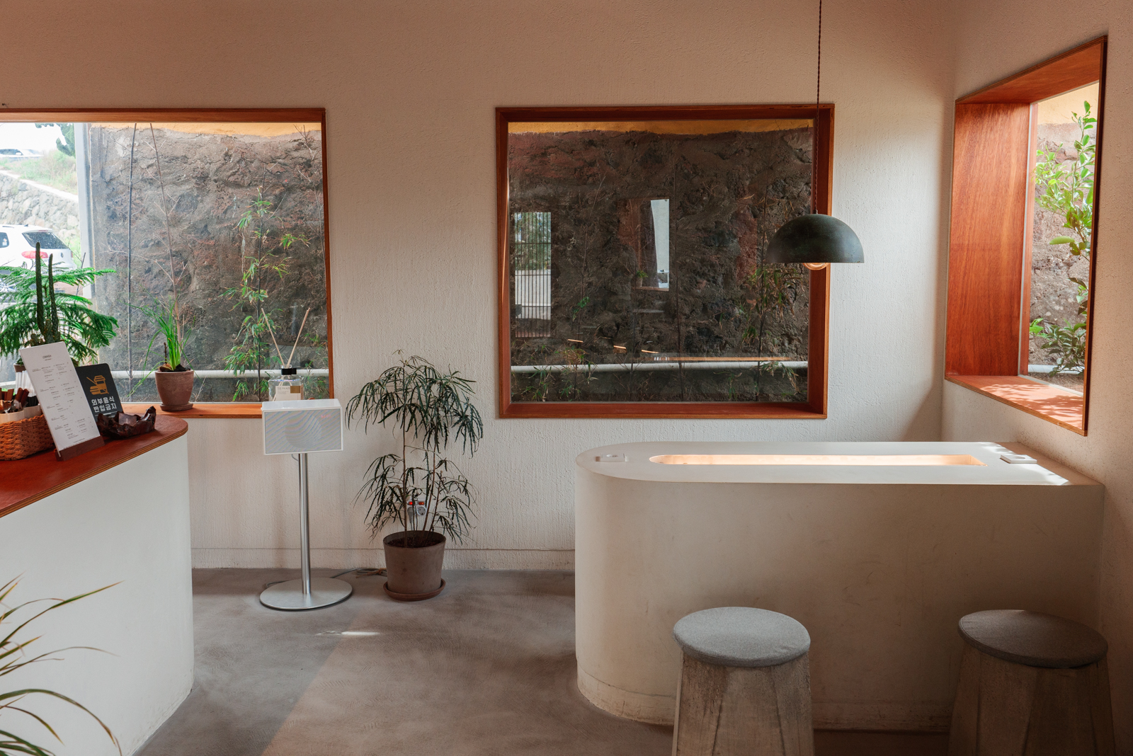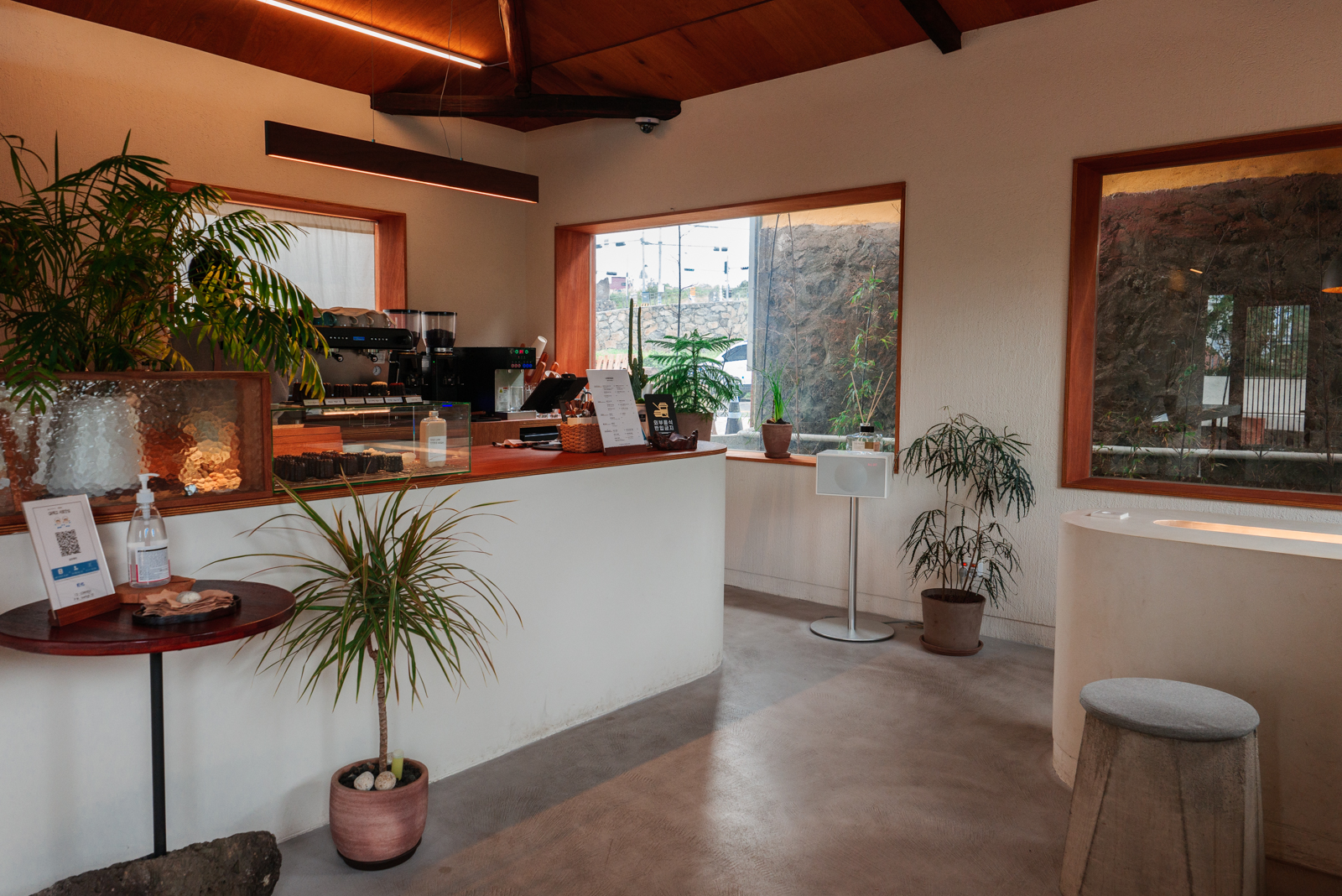 제주 로우하이 카페에 가서 마실 애월 커피와 음료를 주문한 후에는 내부 공간을 둘러봤다. 카페 내부는 크게 두 개의 공간으로 조성되어 있었는데 카운터 앞쪽으로는 창가 너머로 제주돌담이 보이는 곳에 앉아 여행 사진을 남길 수 있었다.