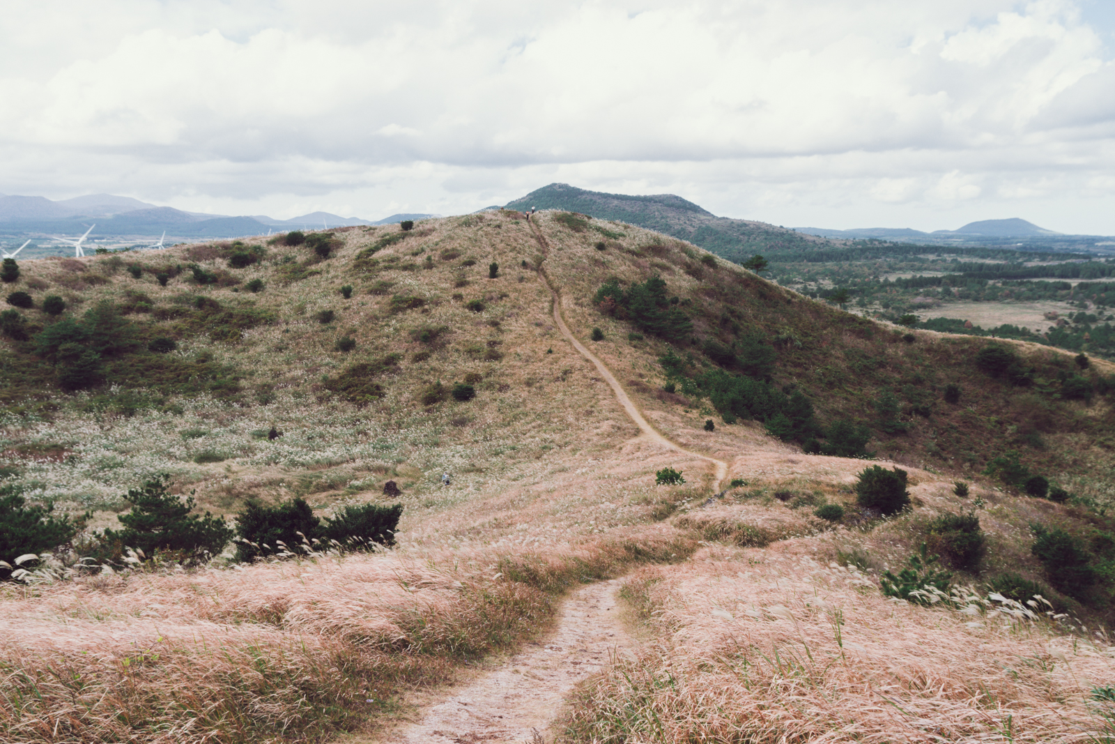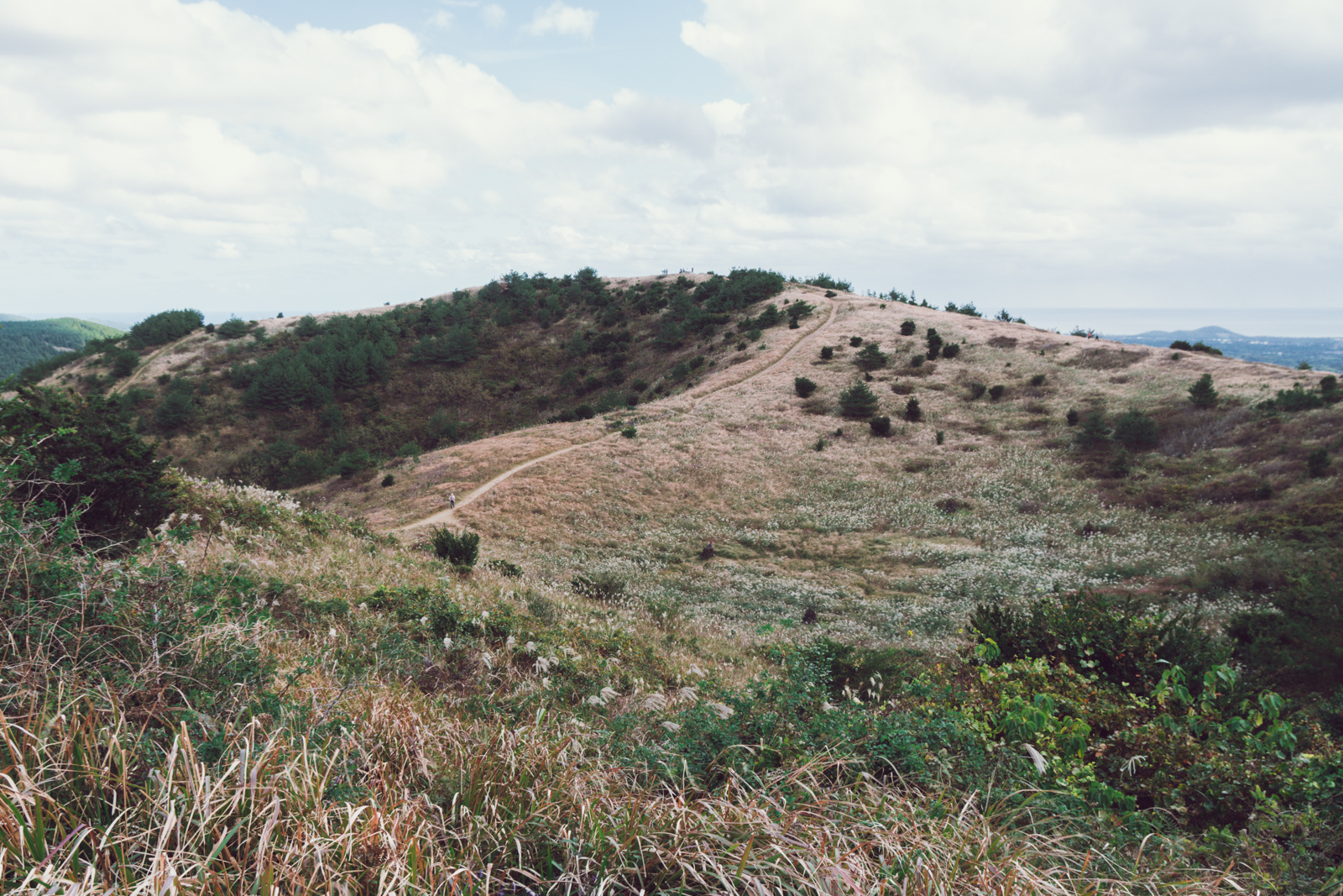 제주시와는 색다른 경치가 보여 도민인 나조차 다른 지역으로 여행을 떠난 듯한 기분이 들었고 양쪽으로 펼쳐진 억새와 굴곡진 언덕은 제주 서쪽 명소 중 하나인 송악산을 연상시키기도 했는데, 하산하는 길도 조성이 잘 되어 있어 편하게 내려왔다.