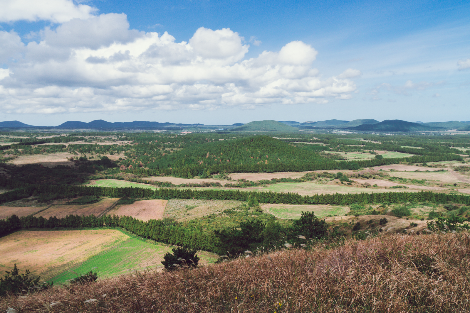 제주도 오름 추천 따라비오름에서 바라본 주변 풍경은 제주시와는 사뭇 다른 모습이었지만 수많은 나무 너머로 여러 오름을 한눈에 볼 수 있었다. 이날은 미세먼지 많아 가시거리가 짧아서 아쉬웠지만 바라보는 내내 마음이 탁 트이는 느낌을 받았다.
