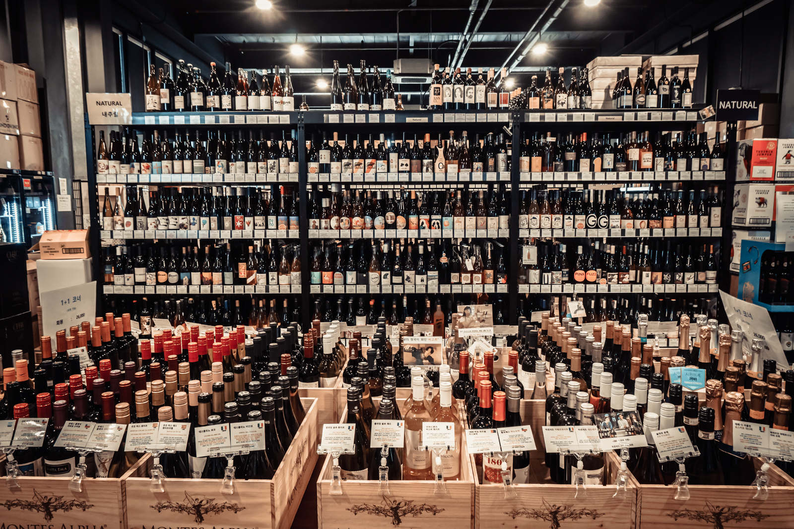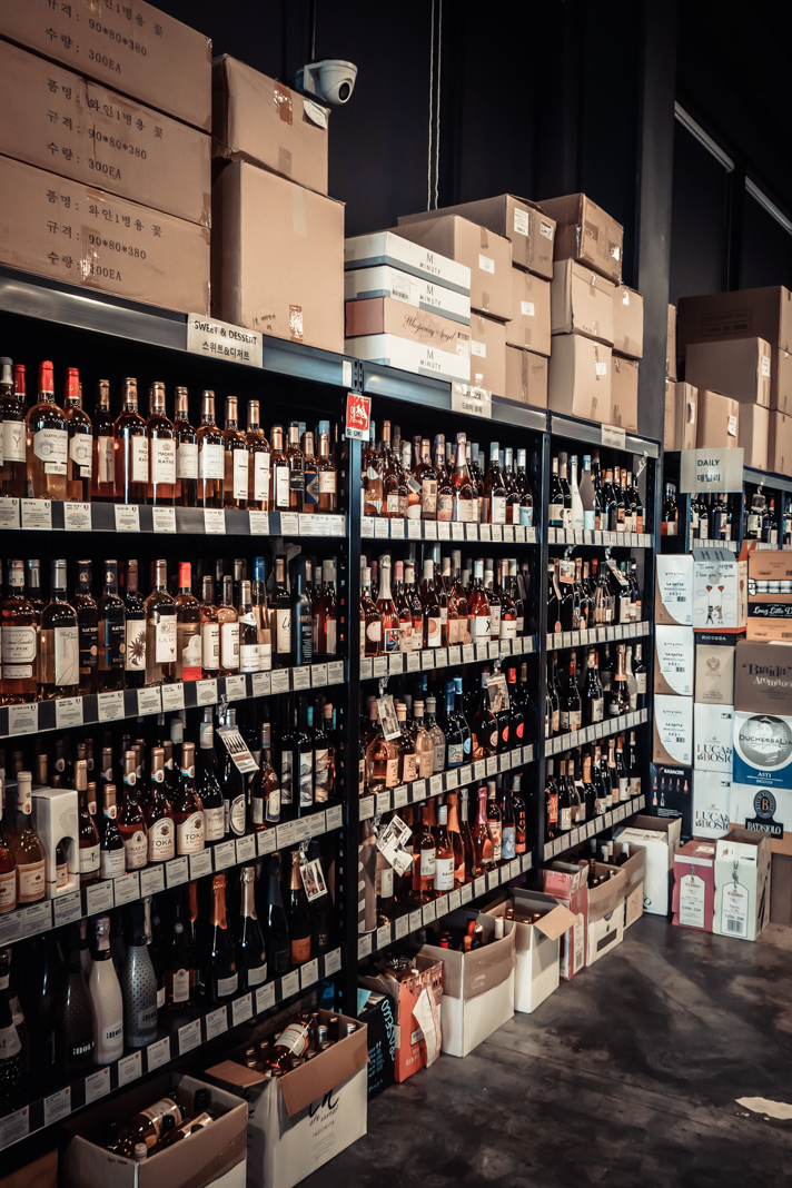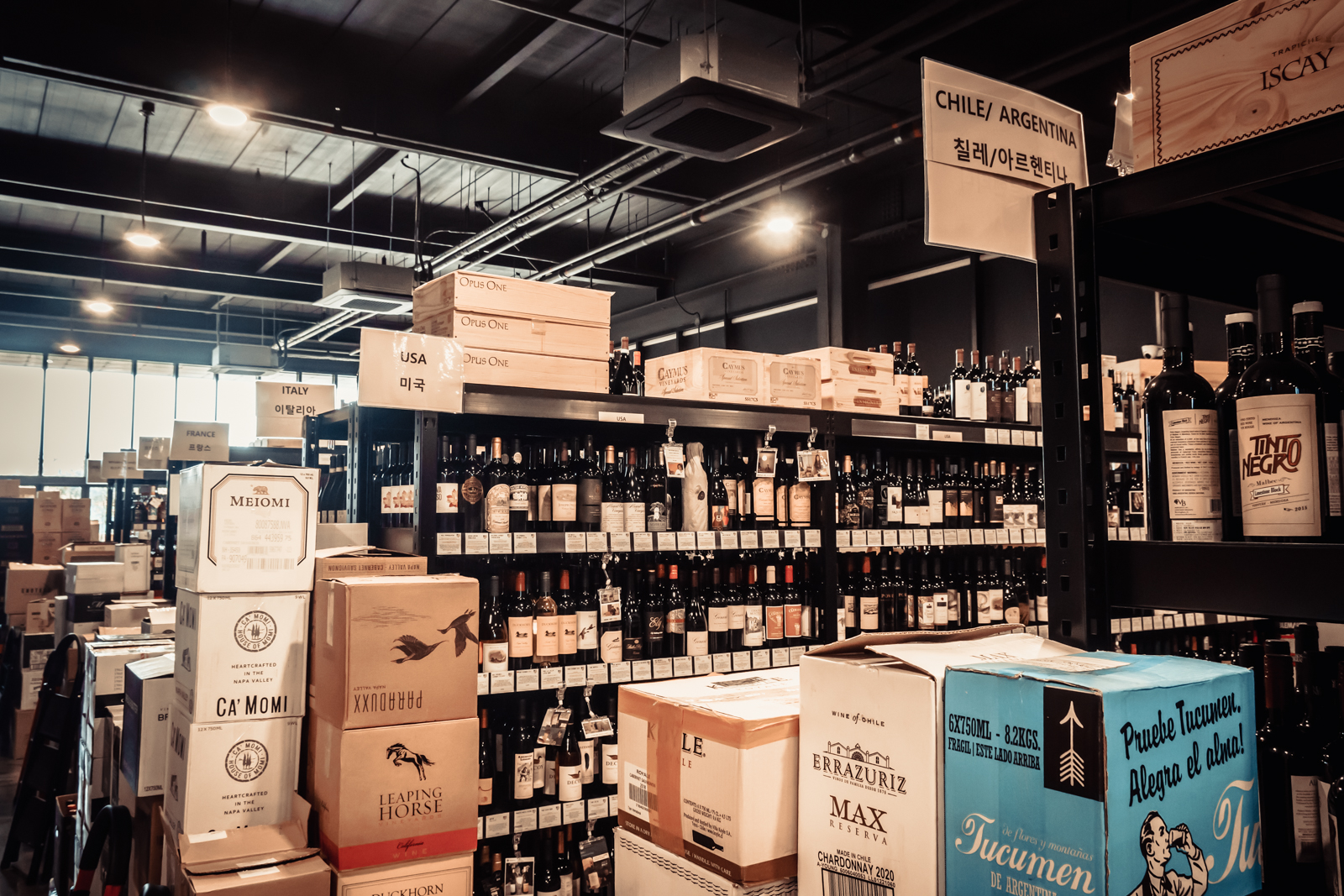 제주 와인창고 본점으로 들어가면 상호명 그대로 수많은 와인을 만나볼 수 있으며 뒤쪽으로는 내츄럴와인, 호주/뉴질랜드, 칠레/아르헨티나, 미국, 이탈리아, 프랑스, 스페인, 포르투갈 등 유럽부터 남미에서 생산된 와인이 카테고리별로 진열되어 있다.